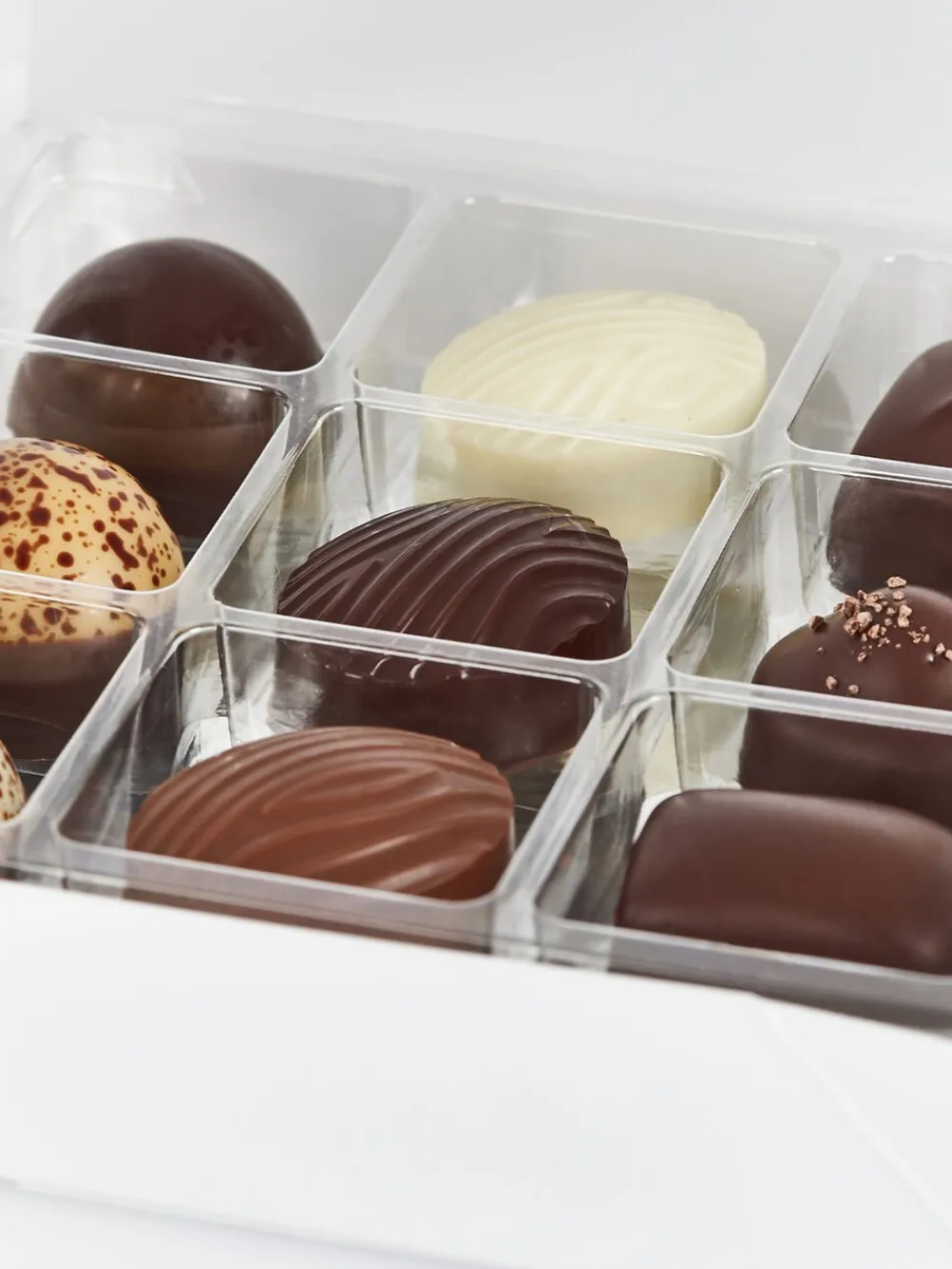 Collection 9 indeholder 9 forskellige varianter af vores raffinerede, klassiske fyldte chokolader. Æsken byder delikat velsmag i form af blandt andet marcipan af stenvalsede middelhavsmandler, praliné, mynte og karamel.