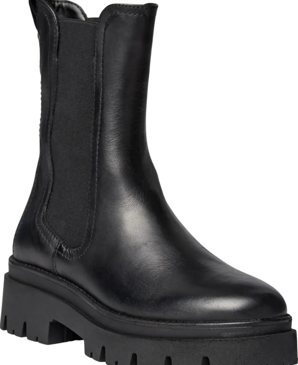Enkel langskaftet chelsea støvle i sort skind med slankt skaft. Skafthøjden 19,5 cm og hælhøjden 50 mm