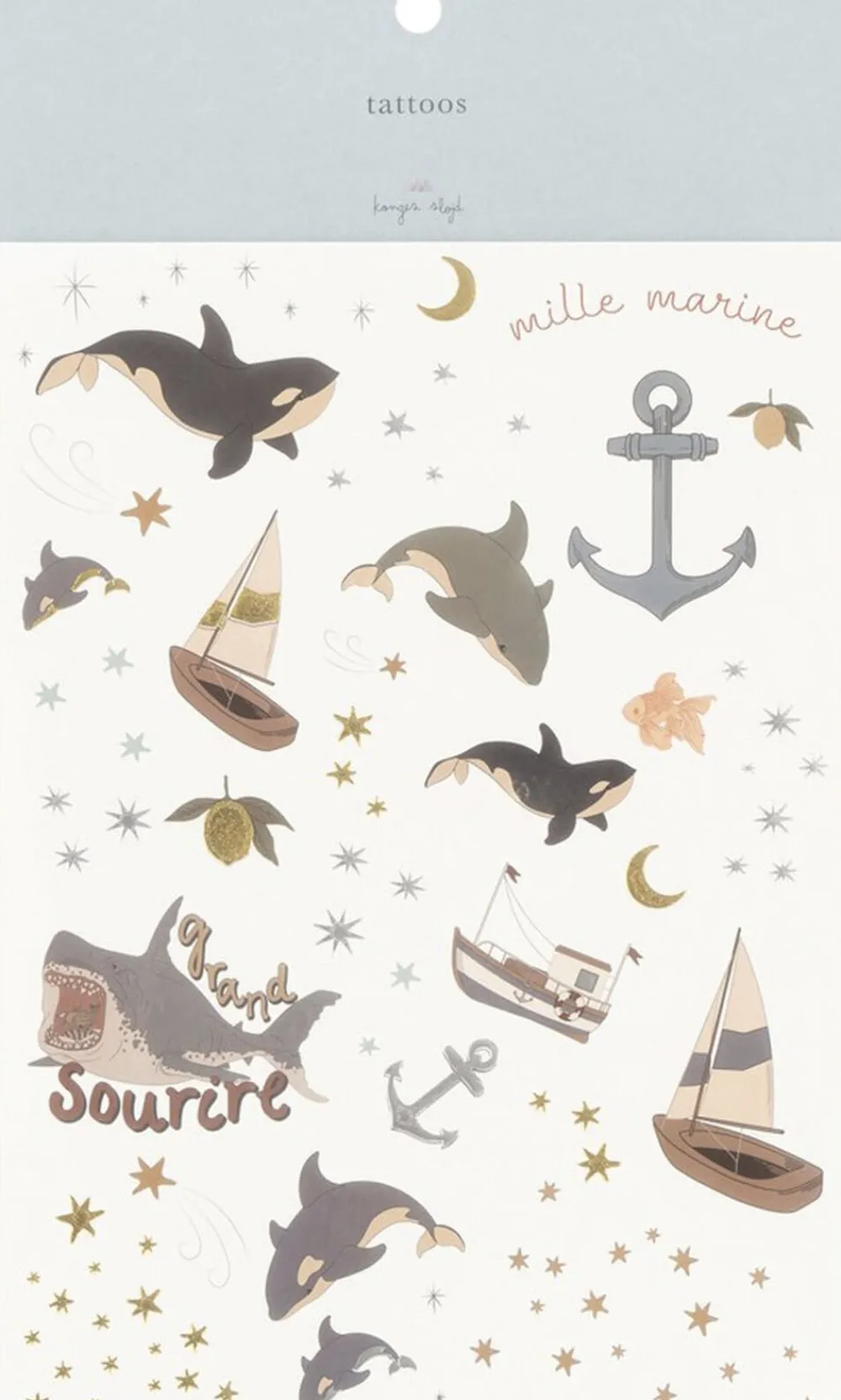 Over 30 midlertidige tatoveringer fordelt på tre ark. Nemme at påføre og fjerne. Påføres med vand eller en våd svamp på under 30 sekunder. Fjernes nemt med vand og sæbe. Testet for skadelige stoffer. Alle ingredienser er godkendt til kontakt med huden. Fra 3 år. ADVARSEL!. KVÆLNINGSFARE. Små dele. Ikke egnet til børn under 3 år. Not allowed for sale in the US.
