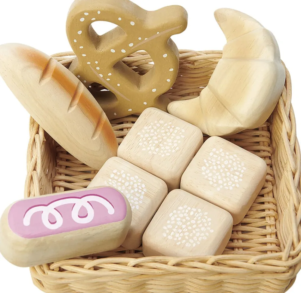 Håndlavet fletkurv med bagerbrød i træ