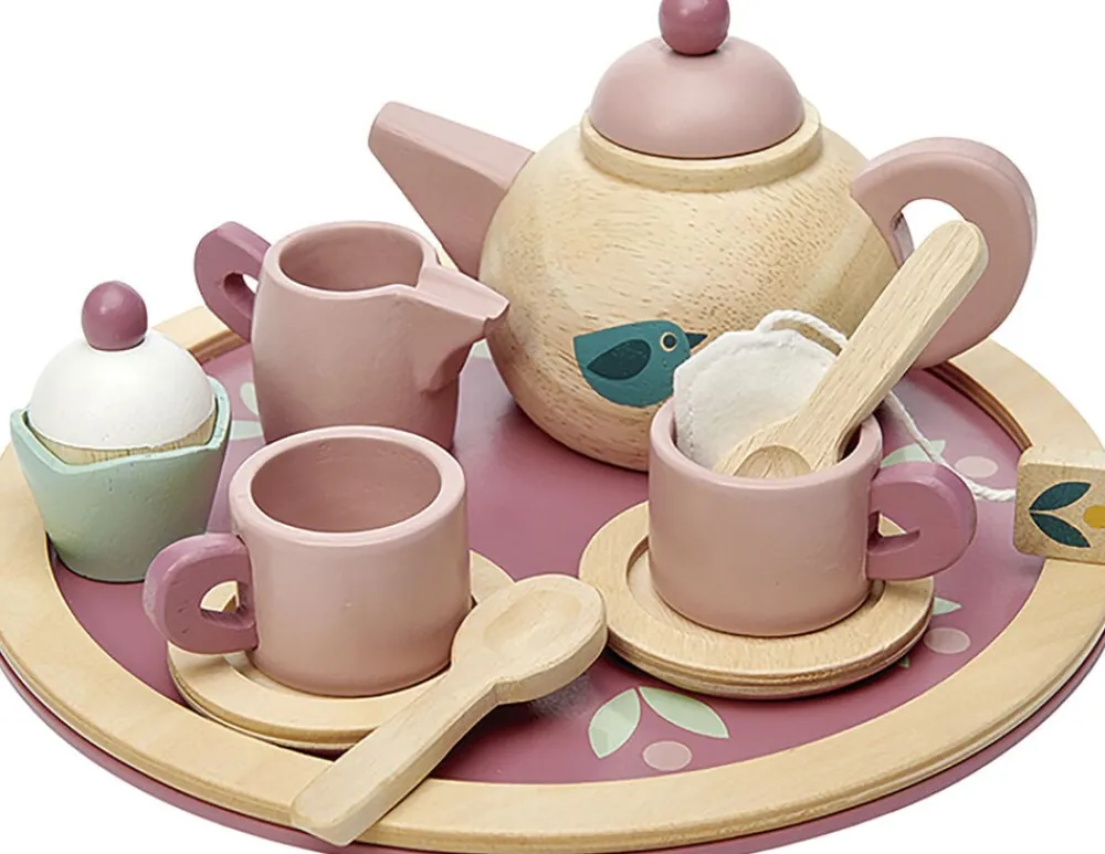 Traditionelt tesæt fremstillet af bæredygtigt gummitræ, i rosa farver med Tender Leaf tema.