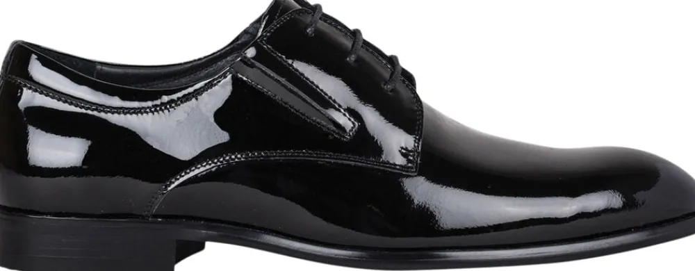 Patent derby shoe, leather lining and full patted calf leather insole, rubber sole