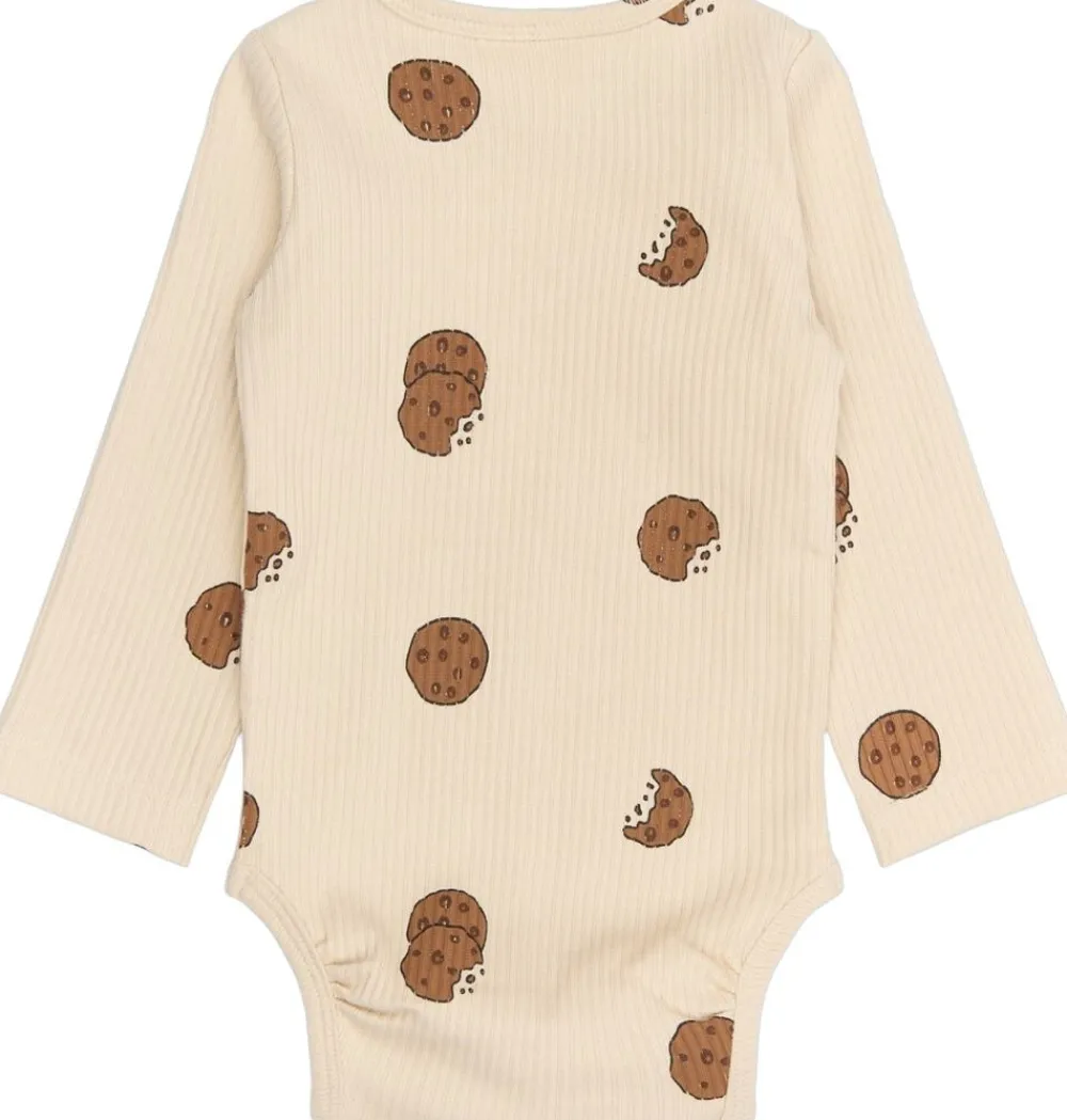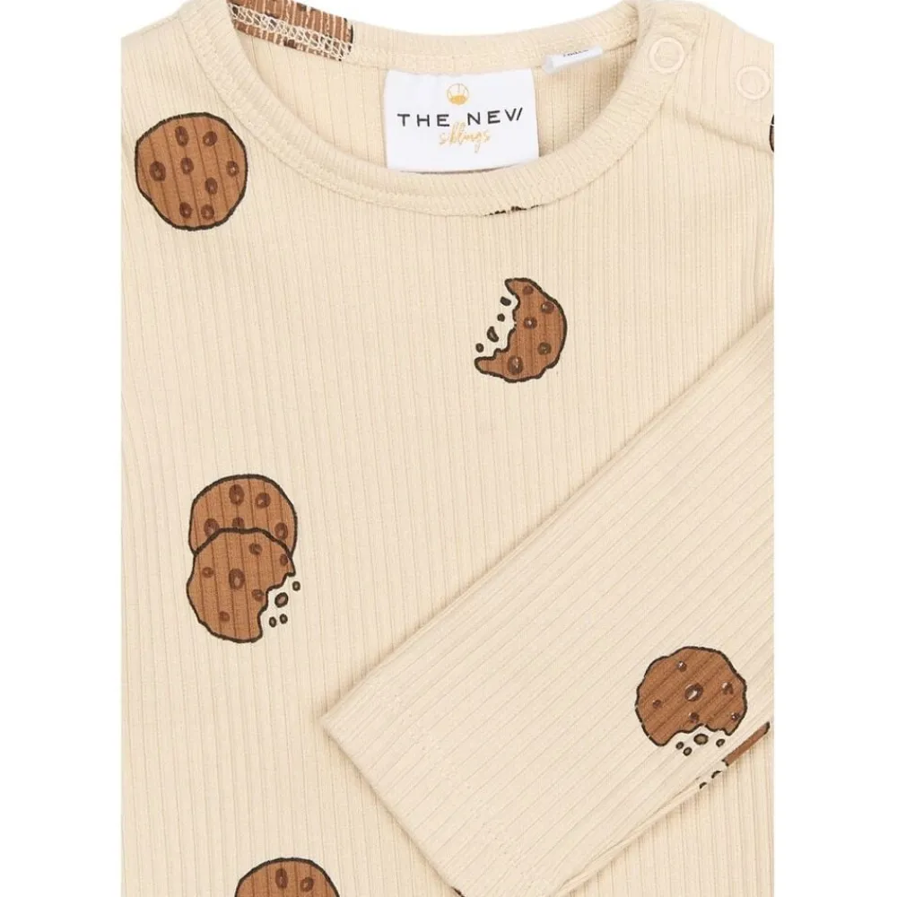 Denne langærmede body fra THE NEW Siblings er både praktisk og fuld af personlighed. Den er designet med et sjovt all-over print af småkager, der giver et legende og charmerende udtryk. Bodyen har en tætsiddende pasform og lukkes nemt med trykknapper ved skulderen og i bunden, hvilket gør den ideel til både hverdag og leg. – Tætsiddende pasform – All-over print med småkager – Trykknapper ved skulder og bund – Blød og komfortabel til hverdagsbrug – Sjov og funktionel stil til de mindste – GOTS Organic, certificeret af Control Union, 842535.