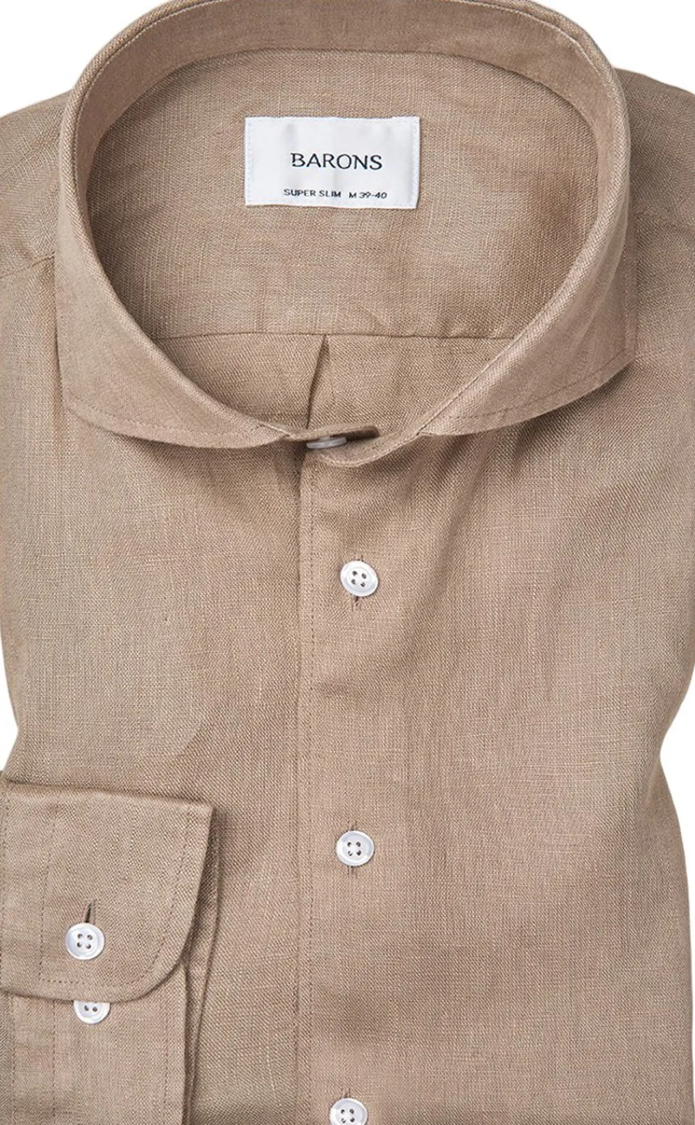 Designet er baseret på vores klassiske silhuetter, men med ekstra bevægelighed i ryggen, takket være en diskret box pleat. Skjorten er skåret med en extreme cutaway-krave, som giver et mere afslappet udtryk uden at det går ud over det skarpe look, der kendetegner skjorter fra BARONS.