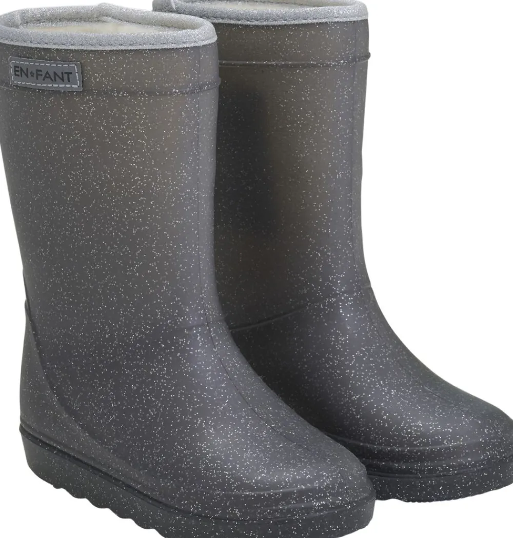 Varme termostøvler fra EN FANT. Støvlen er ensfarvet med glimmer effekt. Støvlen har påsyet EN FANT logo øverst. Støvlen er foret med en uldblanding som sammen med aluminumsmembran i sålen hjælper med at holde fødderne varme. Termostøvlerne er formstøbte af letvægtsgummien Megol. Megol er slidstærkt og giver samtidig god bevægelighed for barnet. Termostøvlerne har dybe riller i den fleksible bund, så det er lettere at holde fodfæste. Indvendige mål i cm: 22 = 13,3 23 = 13,6 24 = 14,6 25 = 15,1 26 = 15,6 27 = 16,2 28 = 16,8 29 = 17,4 30 = 18,1 31= 18,5 32 = 19,4 33 = 20 34 = 21 35 = 21,9 Vi anbefaler at støvlerne vaskes med varmt vand og en blød børste. Hvis det er nødvendigt, kan de også vaskes i vaskemaskinen ved 30 grader skåne. Da foret er uld, er det vigtigt at støvlerne tørres med papir i.