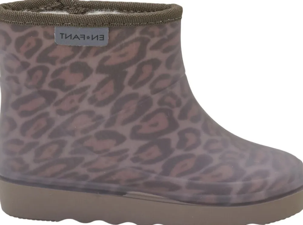 Varme termostøvler fra EN FANT. Støvlen er all-over-printet med påsyet EN FANT logo øverst. Støvlen er foret med en uldblanding som sammen med aluminumsmembran i sålen hjælper med at holde fødderne varme. Termostøvlerne er formstøbte af letvægtsgummien Megol. Megol er slidstærkt og giver samtidig god bevægelighed for barnet. Termostøvlerne har dybe riller i den fleksible bund, så det er lettere at holde fodfæste. Indvendige mål i cm: 20 = 12,6 21 = 12,8 22 = 13,3 23 = 13,6 24 = 14,6 25 = 15,1 26 = 15,6 27 = 16,2 28 = 16,8 29 = 17,4 30 = 18,1 Vi anbefaler at støvlerne vaskes med varmt vand og en blød børste. Hvis det er nødvendigt, kan de også vaskes i vaskemaskinen ved 30 grader skåne. Da foret er uld, er det vigtigt at støvlerne tørres med papir i.