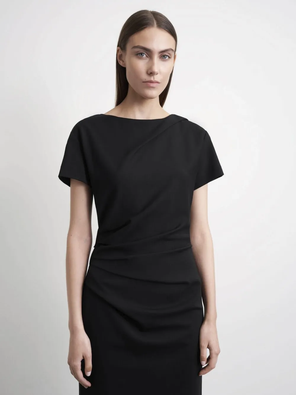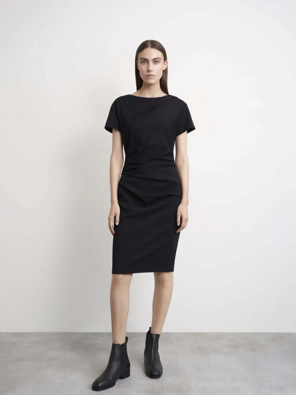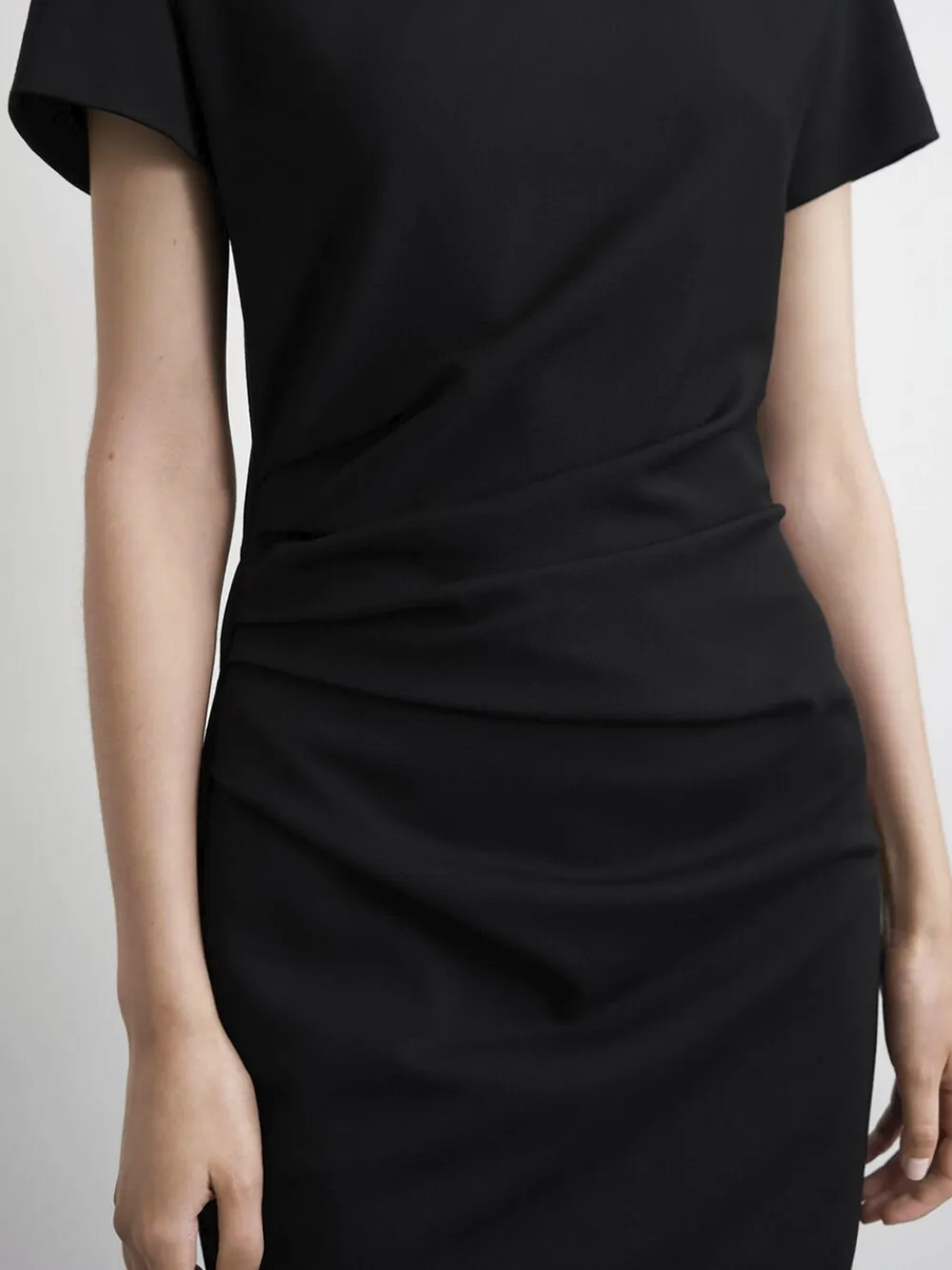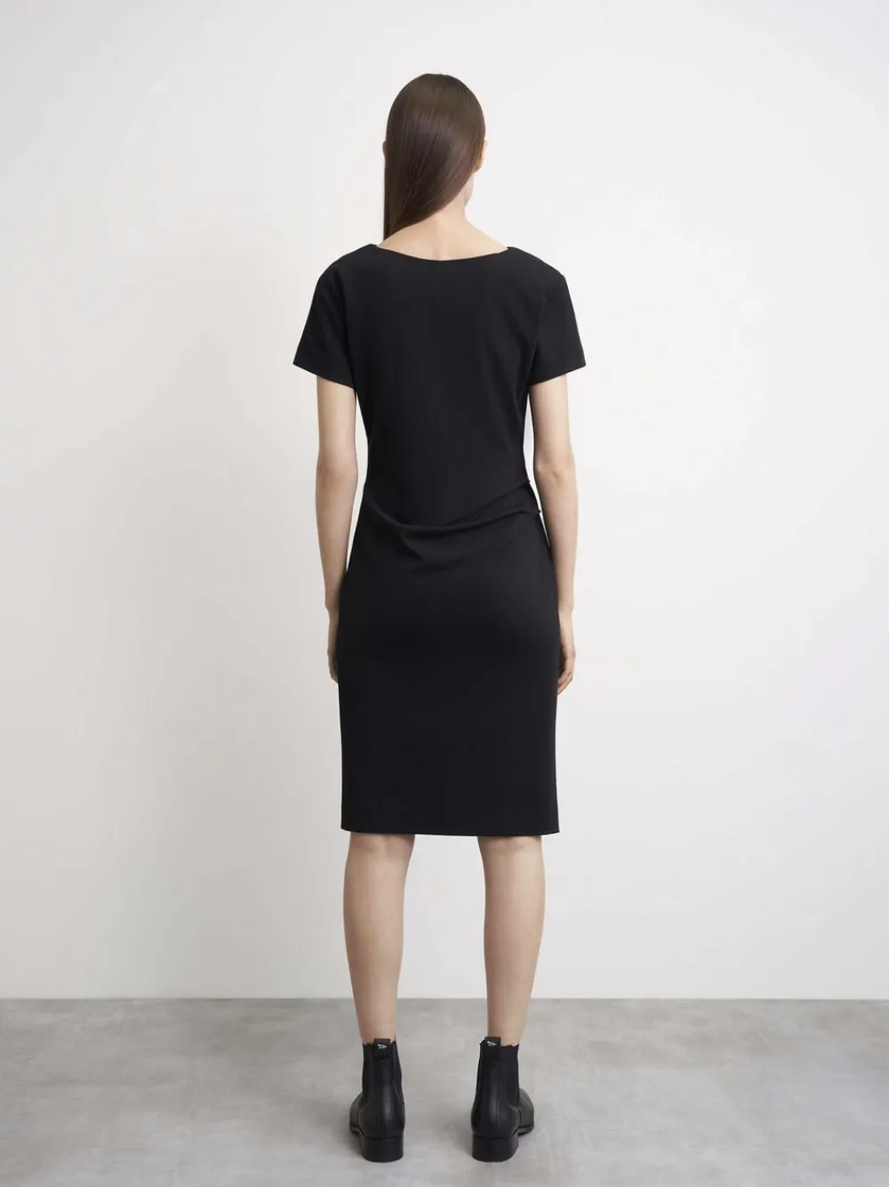 Dagkjole i tungt Punto Milano-jerseystof. Tilpasset silhuet. Knæets længde. Korte ærmer. Afdækkede læg i taljen og bodice. Fuldt foret med strækfor. Fremstillet i Rumænien