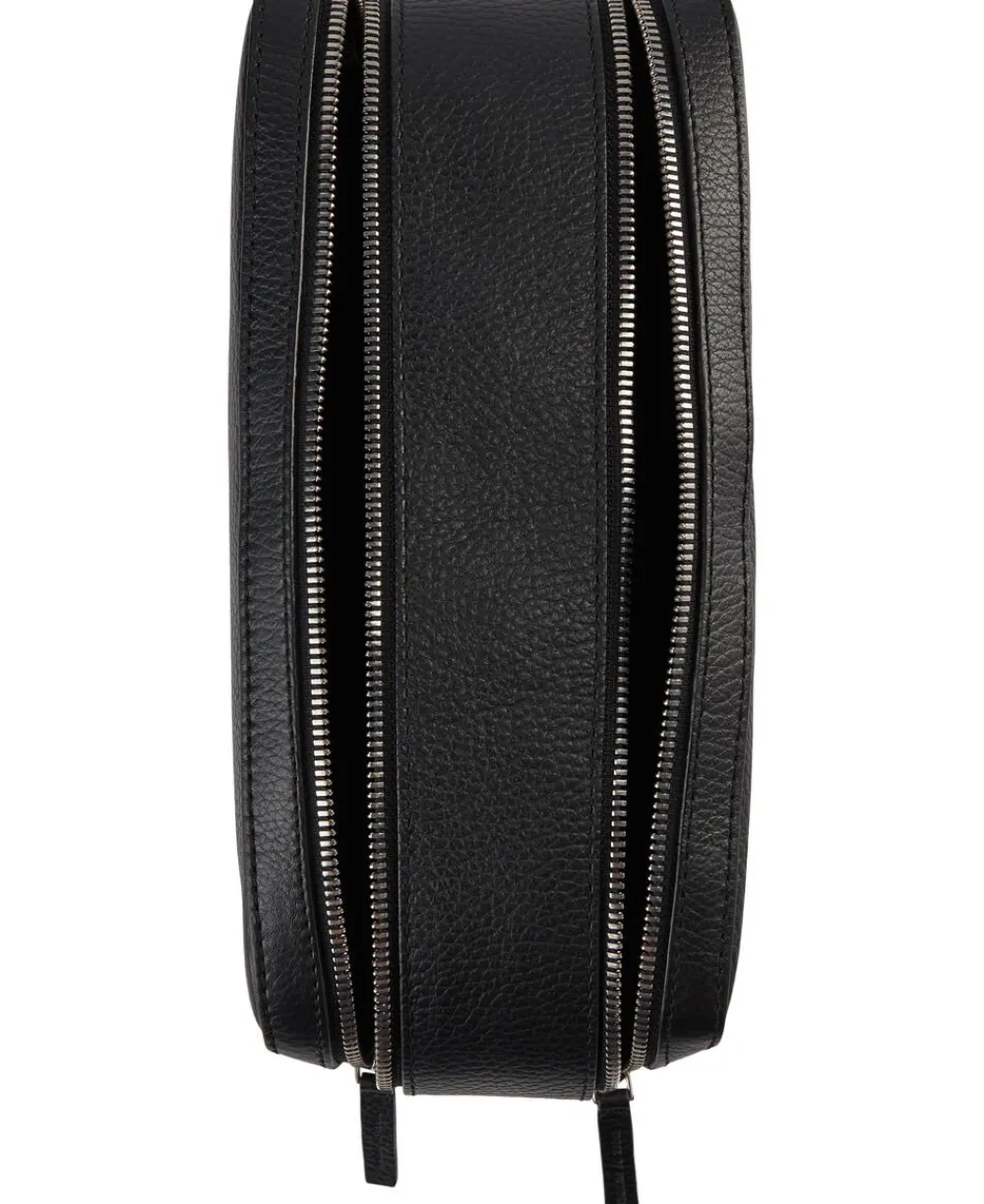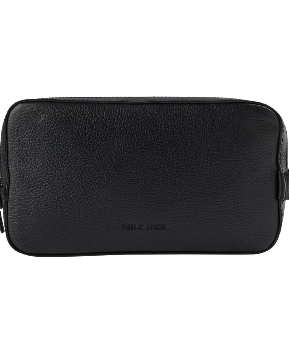 Vask posen i blødt, kornet læder med lynlåslukning. To hovedrum med lynlåslukning. Læderhåndtag på siden. Indvendigt har de tre åbne lommer og vandafvisende for. Præget Tiger of Sweden-logo foran. Størrelse: 14 x 25 x 10 cm