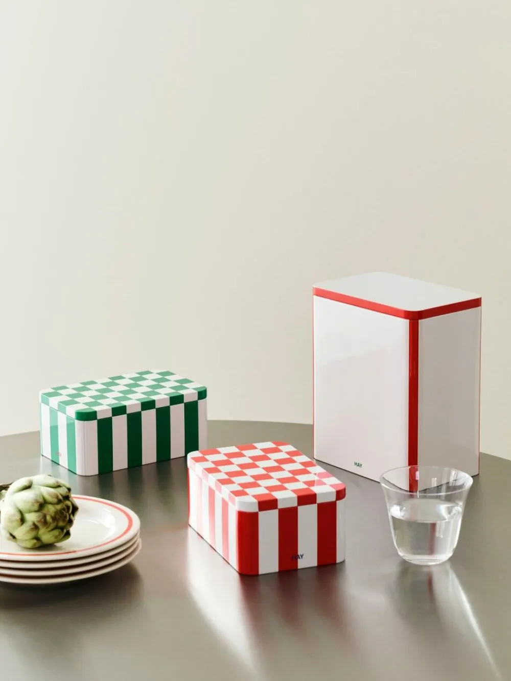 Tin Container-Small-Red and off-whi>Hay Hot