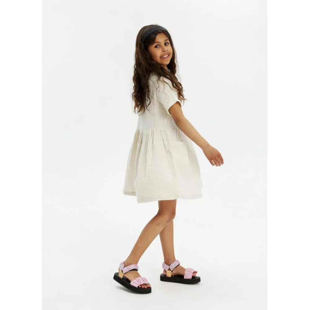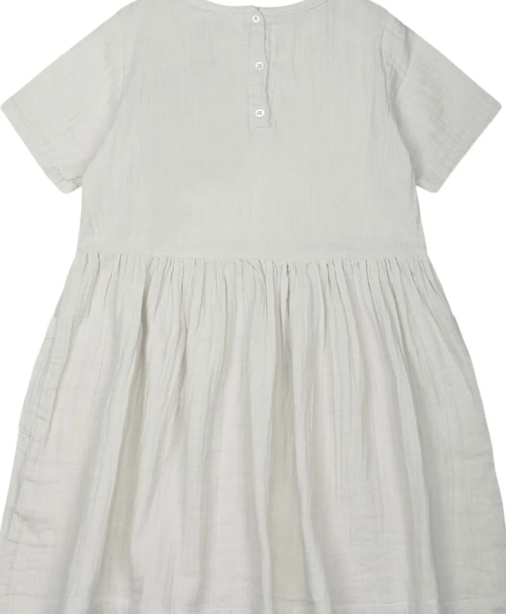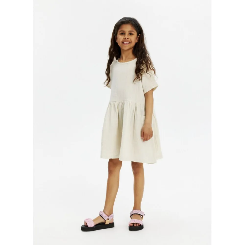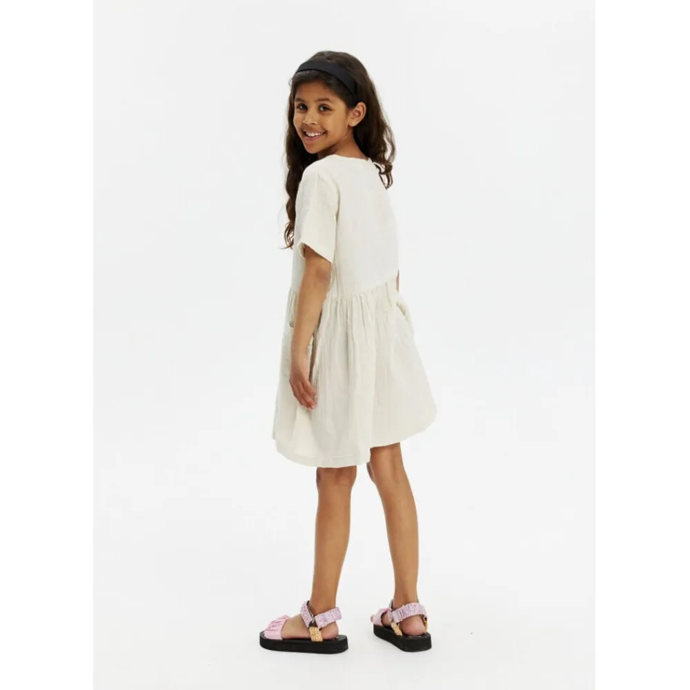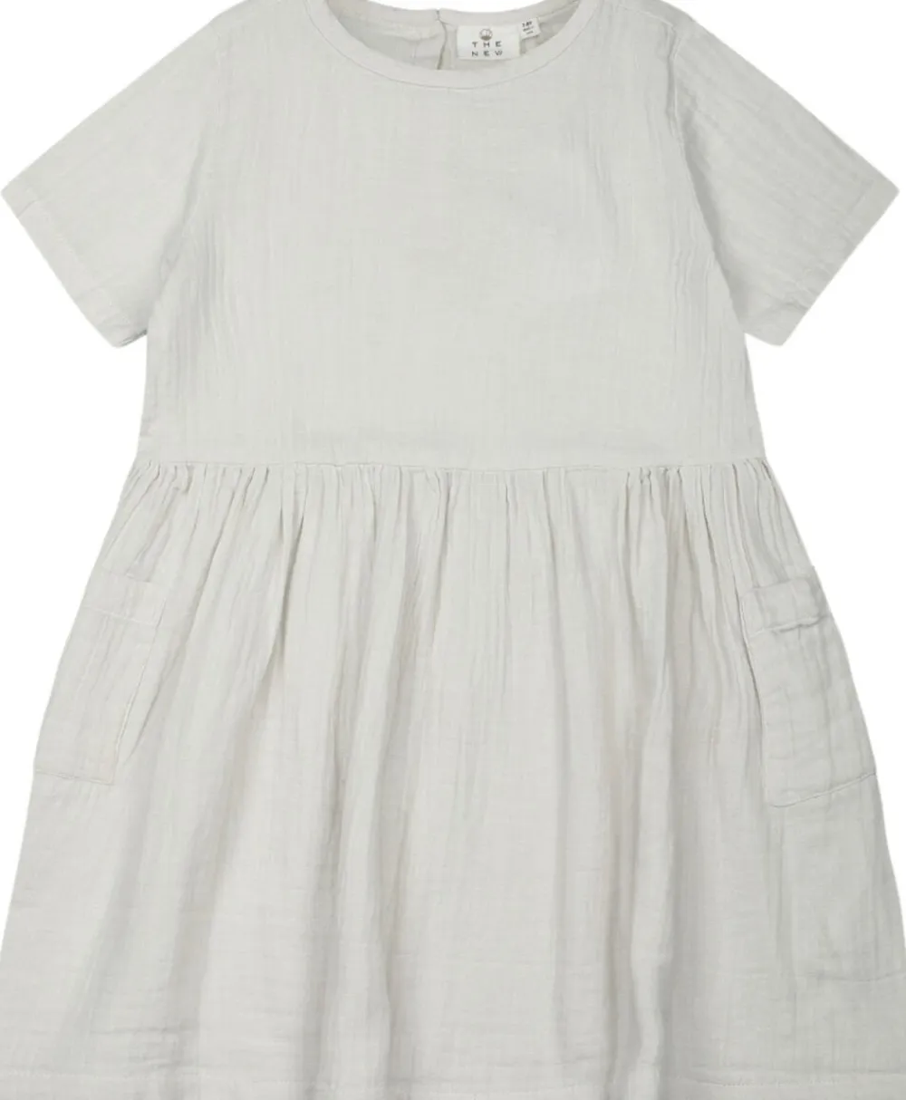 Ensfarvet og afslappet bomuldskjole fra THE NEW, designet med korte ærmer og lommer. Det er en blød, praktisk og letvævet bomuldskjole med en løs pasform, så den er let at hoppe i og tilbyder høj bevægelsesfrihed. Den er derfor fantastisk til dage med høje temperaturer. Du kan med fordel også anvende den udenover en fin langærmet bluse. Kjolen er egnet til hverdagsbrug, men kan også styles til foråret og sommerens fester og særlige anledninger. – Kort kjole med en længde der slutter lige over knæene. – Normal pasform med a-snit. – Korte ærmer. – Rund halsudskæring. – Ensfarvet. – To åbne lommer i skørtet. – Knaplukning øverst på ryggen. – Muslin stof. – 100% bomuld.