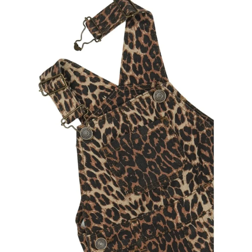 Disse trendy denim smækbukser med leopardprint fra THE NEW siblings er både praktiske og stilfulde. Selerne kan justeres og fastgøres på knapper, så du kan tilpasse pasformen. Bukserne har forlommer og to knapper i hver side af taljen, samt bæltestropper for ekstra funktionalitet. Den ene lomme på maven giver et ekstra cool og praktisk touch. – Normal pasform. – Justerbare seler med spænder og knapper. – Forlommer samt lomme på maven. – To knapper i hver side af taljen. – Bæltestropper. – Leopardprint.