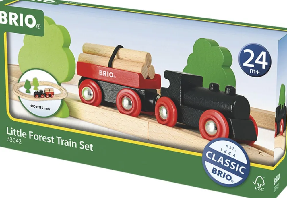 Hop på toget og lad os tage i skoven Der er masser af arbejde at gøre med stammer, der skal læsses på og af Du kan også vælge bare at køre rundt for sjov og hygge dig i toget Sæt med 18 dele Fra 2 år