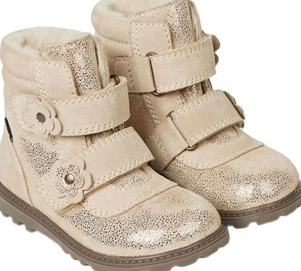 Bundgaard Tokker Flower Ivory Glitter støvler kombinerer stil og komfort til de små. Perfekte til sæsonens eventyr med deres funklende design, der lyser op i ethvert vejr. Ideelle til leg!