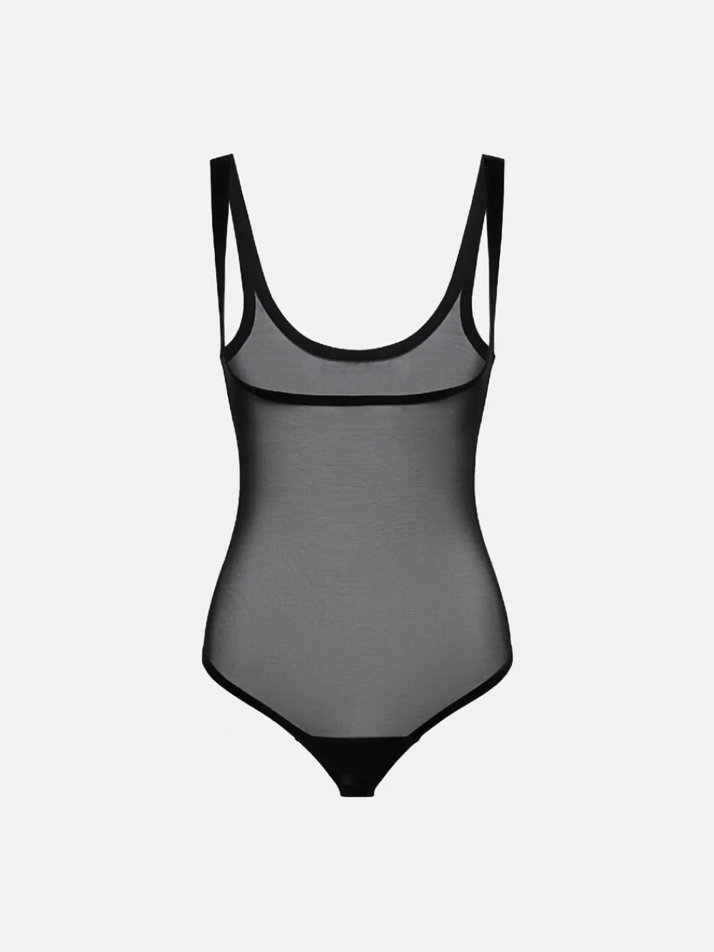 Denne Krop kan kombineres med dens egen bh takket være den innovative halsudskæring. Blød, let let tulle konturerer effektivt taljen og maven. Den satinagtige, sømløse finish og stropperne giver ultimativ komfort.