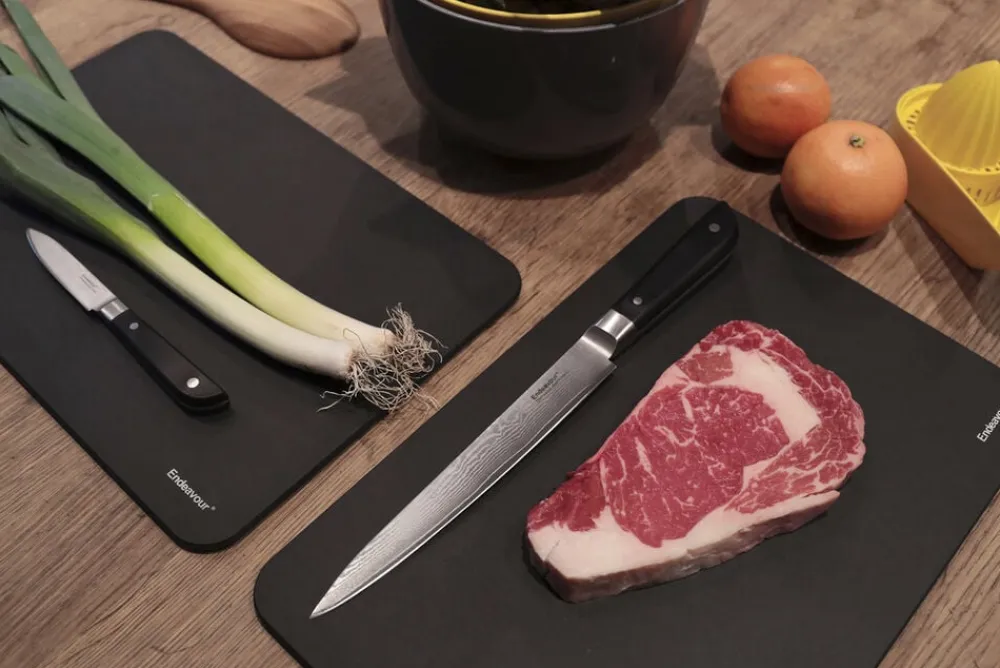 Med Endeavour Twin Boards får du to identiske skærebrætter. De er skabt til et dynamisk køkken hvor flere opgaver ofte skal løses. Ved at have to brætter kan man nemt og overskueligt adskille emnerne fra hinanden og derved opretholde god hygiejne i sit køkken. Twin Boards skærebrætter er praktiske, stilfulde og utroligt slidstærke.