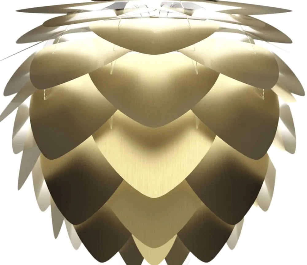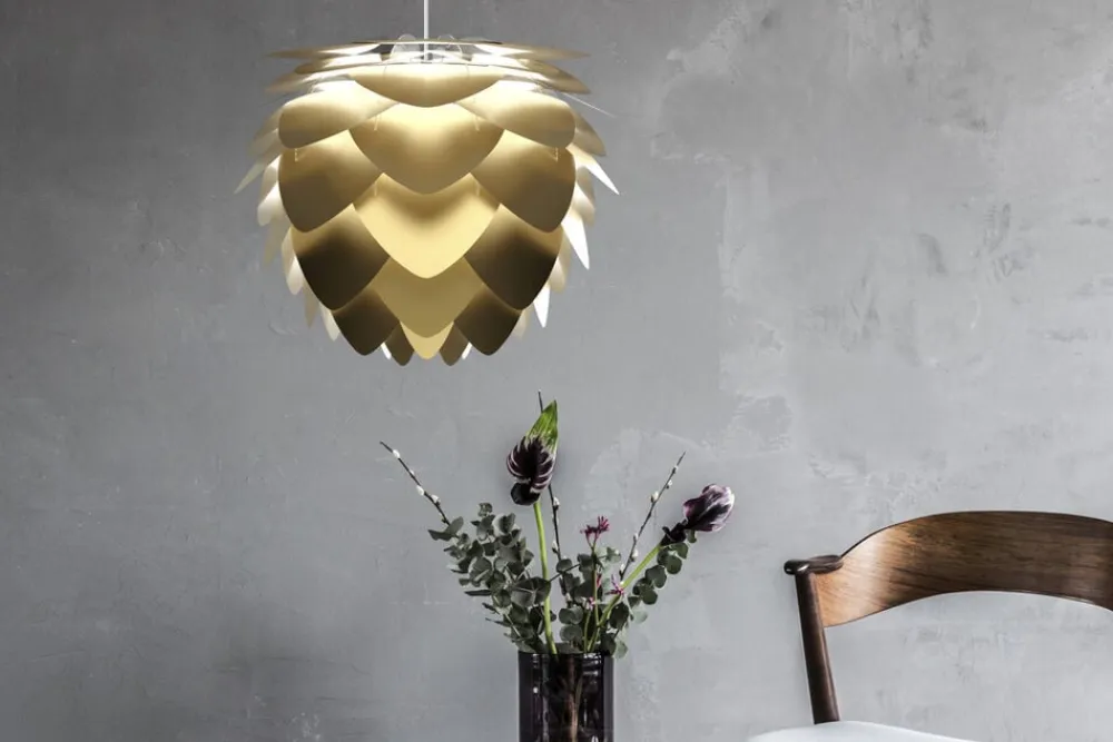 Inspireret af naturen med sine karakteristiske trekantede kronblade, kaster Aluvia i børstet messing et varmt og blændende omgivende lys, der ser lige så godt ud, som det tænder.