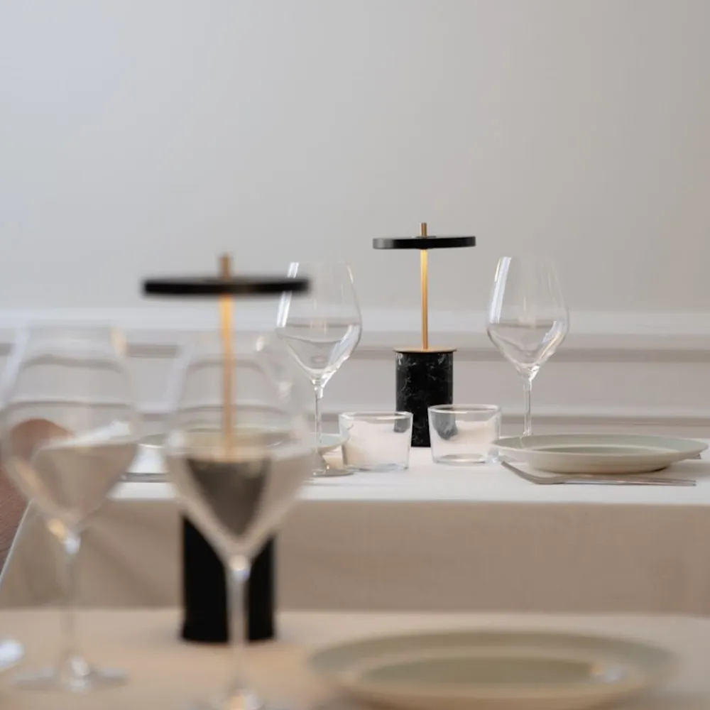 Få lys på dine middage med Asteria Move Mini – en lille bærbar lampe, der lyser op i omgivelserne og skaber den perfekte stemning til en intim middag. Asteria Move Mini har et slankt og stilfuldt udtryk med en udskiftelig Fast af massiv marmor, der giver et klassisk touch til Design. Asteria Move Mini har fire forskellige lystrin, der giver dig mulighed for at justere lyset til den ønskede indstilling med et let tryk på lampens base. Dens stendetaljer tilføjer et skulpturelt præg til Design, hvilket får Asteria Move Mini til at pryde enhver hylde eller skabstop i hjemmet. Opladning af Asteria Move Mini sker uden besvær ved at placere lampen på den medfølgende opladningsplade. Asteria Move Mini er velegnet til både indendørs og Outdoor brug.