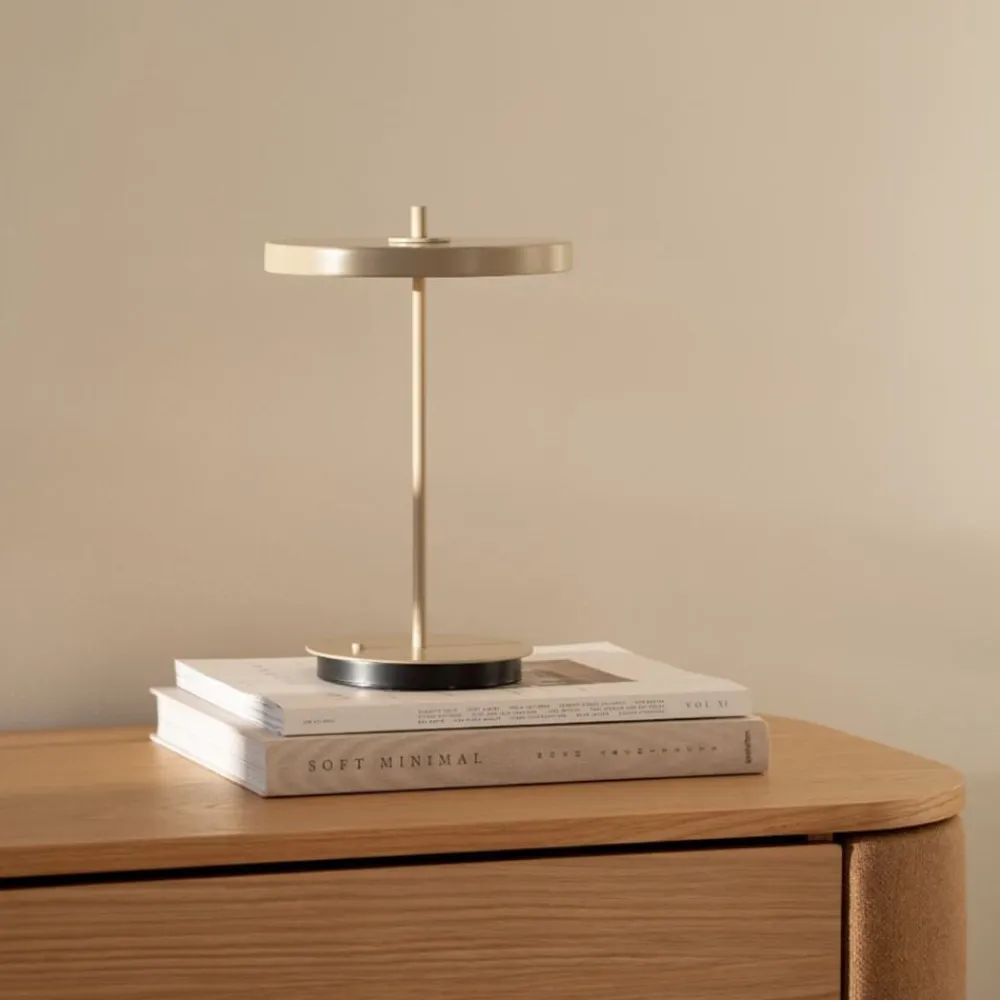 Asteria Move-lampen kombinerer et bærbart, ledningsfrit Design med problemfri funktionalitet og underspillet raffinement. Dens indbyggede LED-panel og diffuser udsender blødt, omgivende lys, mens fire justerbare belysningsniveauer giver dig mulighed for at skabe den ideelle atmosfære til enhver lejlighed – uanset om du er til fokuseret arbejde eller en afslappet aften. Asteria Move er perfekt til en hyggelig middag eller til at give det perfekte lys i en moderne stue og komplementerer enhver indretning med sit tidløse Design og alsidighed, der bringer ubesværet luksus til hvert hjørne af hjemmet. Med sin mobilitet sikrer Asteria Move, at belysningen altid er der, hvor du har brug for den – ved sengekanten, på køkkenbordet eller i stuen – hvilket sikrer den perfekte atmosfære i ethvert rum. Asteria Move fås i en bred vifte af farver og tilbyder et udvalg til alle stilarter og omgivelser, hvilket gør den til en alsidig tilføjelse til ethvert hjem.