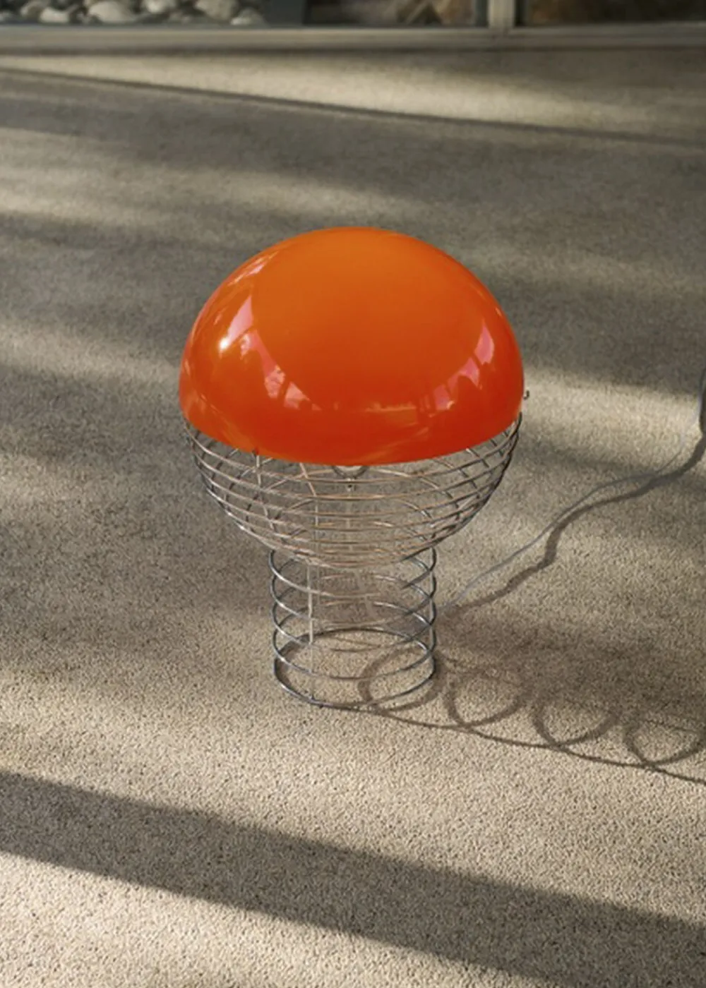 Den dekorative bordlampe er defineret af den forkromede ståltrådsramme, der udvides øverst for at understøtte denhvide halvkugleformede plastiknuance. Pæren er indeholdt i enlille, også halvkugleformet metalreflektor, som leder lysettil indersiden af skyggen. Wirerammen giver Design et karakteristisk, men meget let ogikke-indgribende udseende, og den hvide nuance giver masser afambient lys.