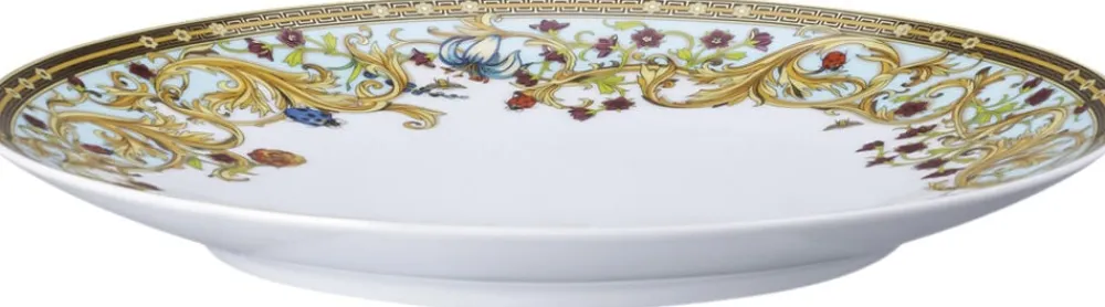Tallerkenen, med en imponerende diameter på 28 cm, byder på en elegant form og er smukt dekoreret med Le Jardin de Versace-motiver inspireret af Versaces ikoniske designæstetik. Denne tallerken er ikke blot et praktisk serveringsredskab, men også en kunstnerisk erklæring, der løfter din borddækning til nye højder af skønhed.