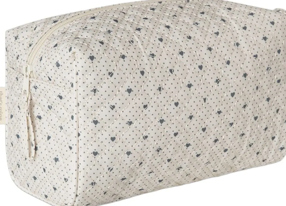 Med denne toilettaske kan du holde styr på alt det nødvendige. Perfekt for de små til overnatning eller til at holde de små ting samlet i en toilettaske. Denne toilettaske er designet med et fint quiltet mønster uden på. Toilettasken kommer med et stort rum og kan lukkes med en lynlås hvor man kan holde fast i en strop i den ene ende.
