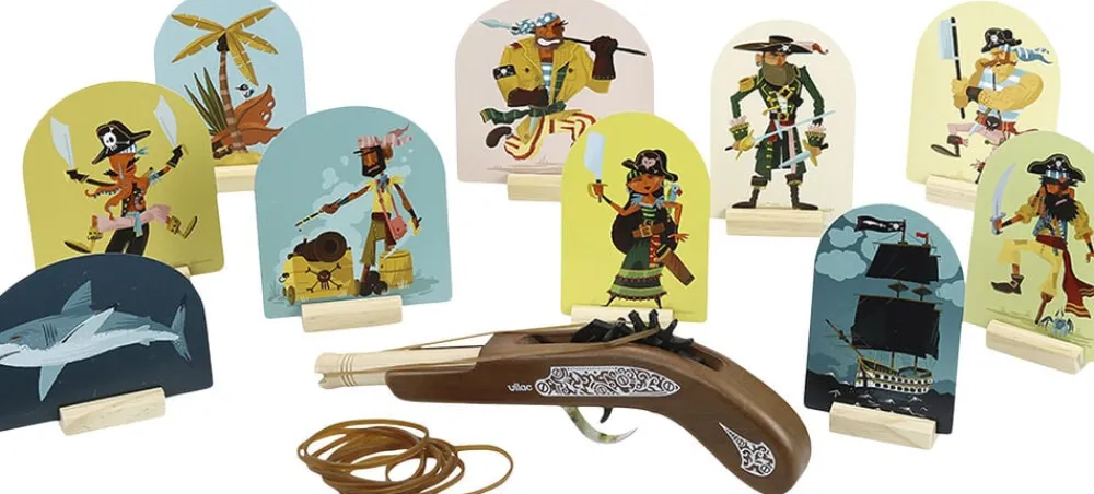 Du kan sigte efter pirater, piratskib og hajer. Hvem kan ramme hvad?