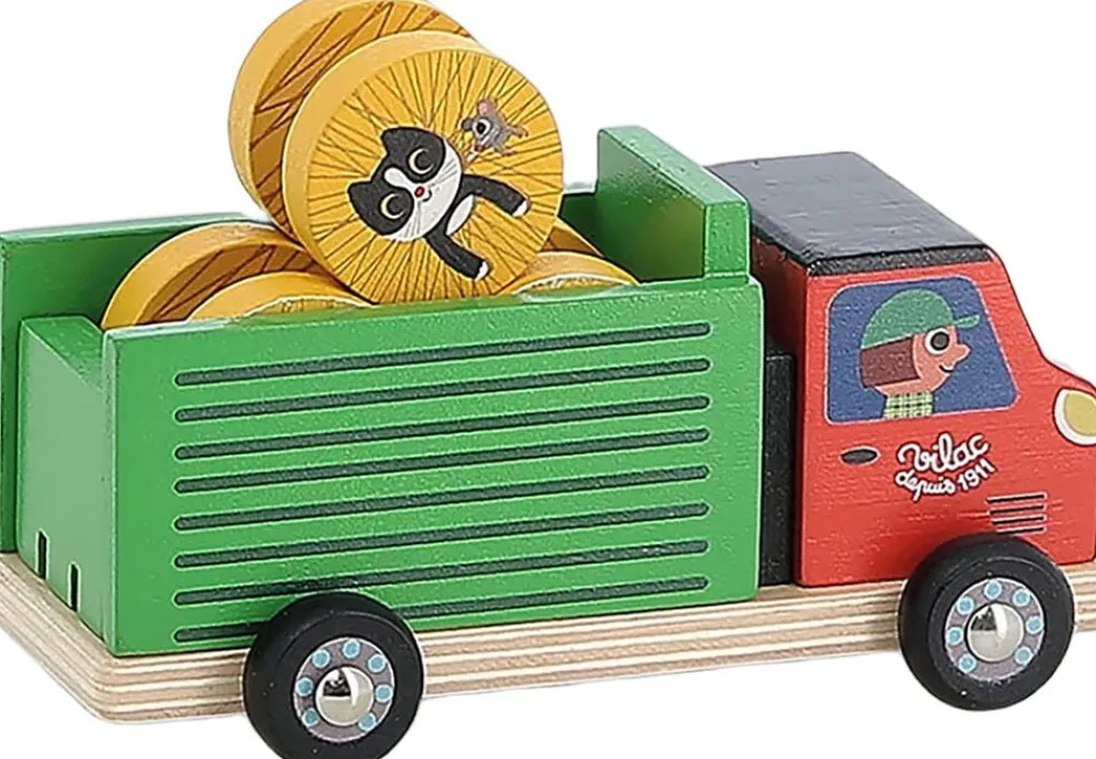 Sjovt aktivitetslegetøj med rullende halmballer, en sød kat og en lastbil med hjul. Hjælp landmanden med høsten og lad de 3 rundballer zig-zagge gennem laden til den ventende lastbil. Flot og farverigt dekoreret med en lille kat, som kigger op fra sit gemmested i halmen.