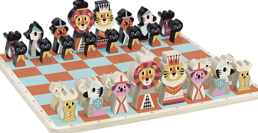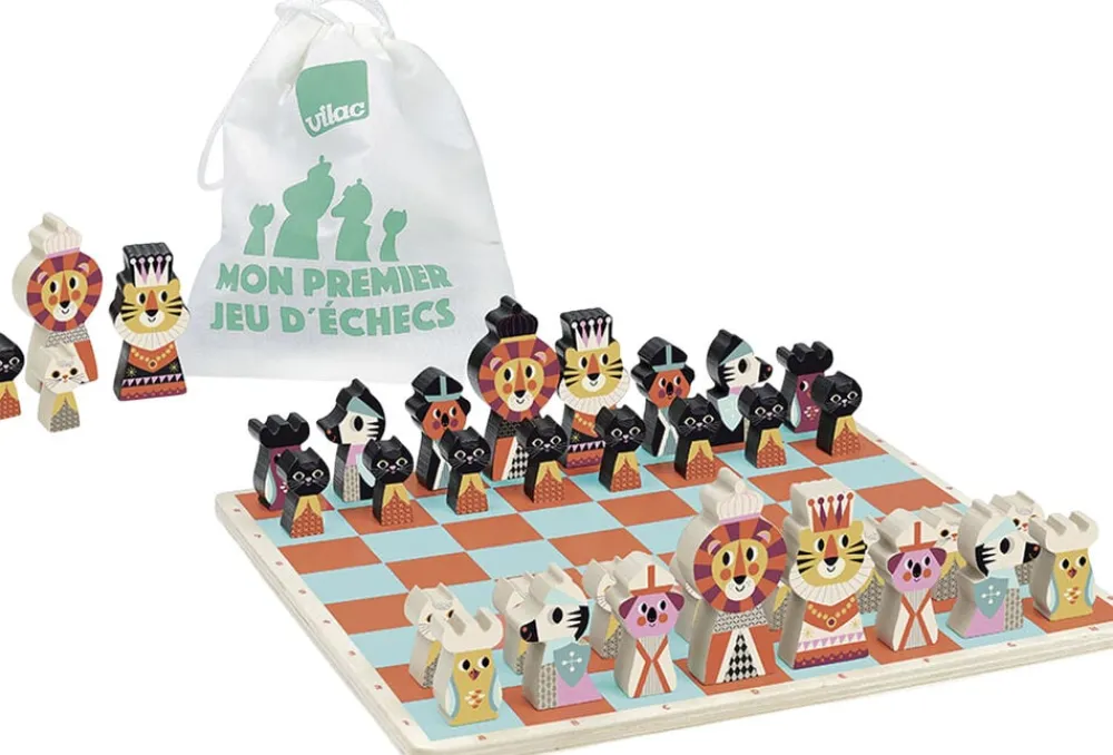 Spillet har i alt 32 dele og er fremstillet i træ.