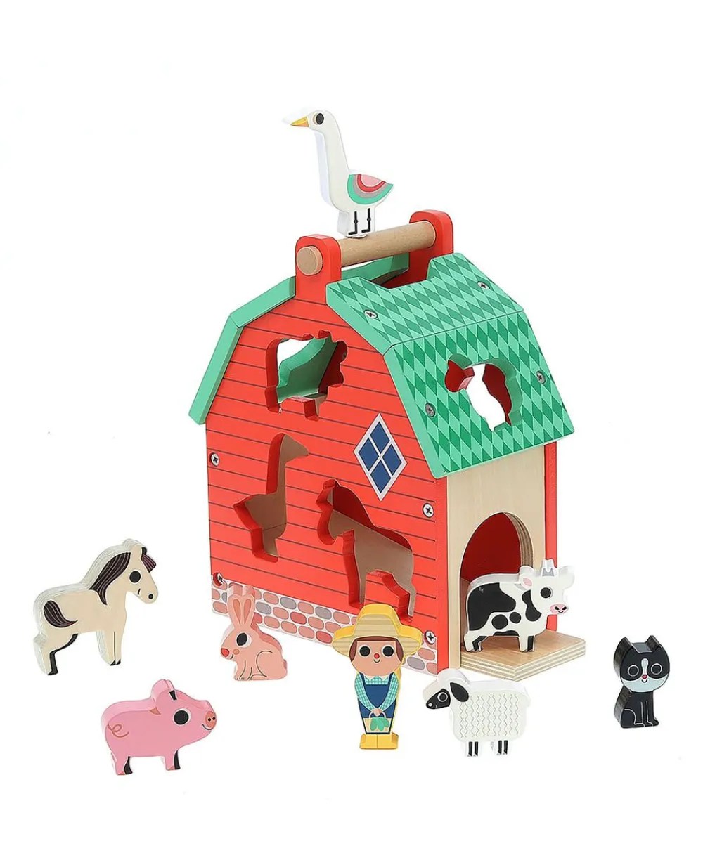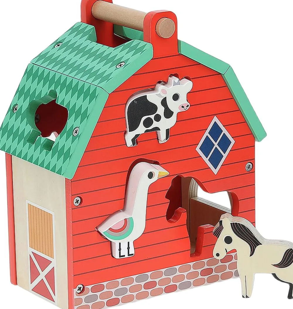 Børn vil helt sikkert have det sjovt med denne puttekasse med lade og dyr. Her kan der lære i deres helt eget tempo at finde det rigtige hul til dyrene.