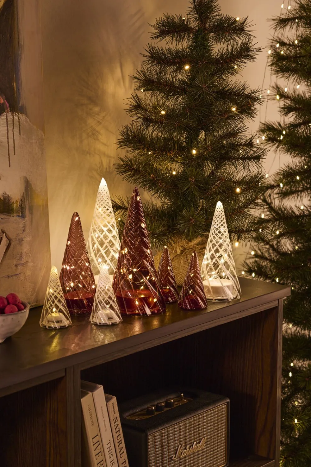 Elegant dekorations træ i mundblæst glas, LED lysene reflekter fint i det buet glas. Vilma serien kan fint mikses i forskellige størrelser og farver.