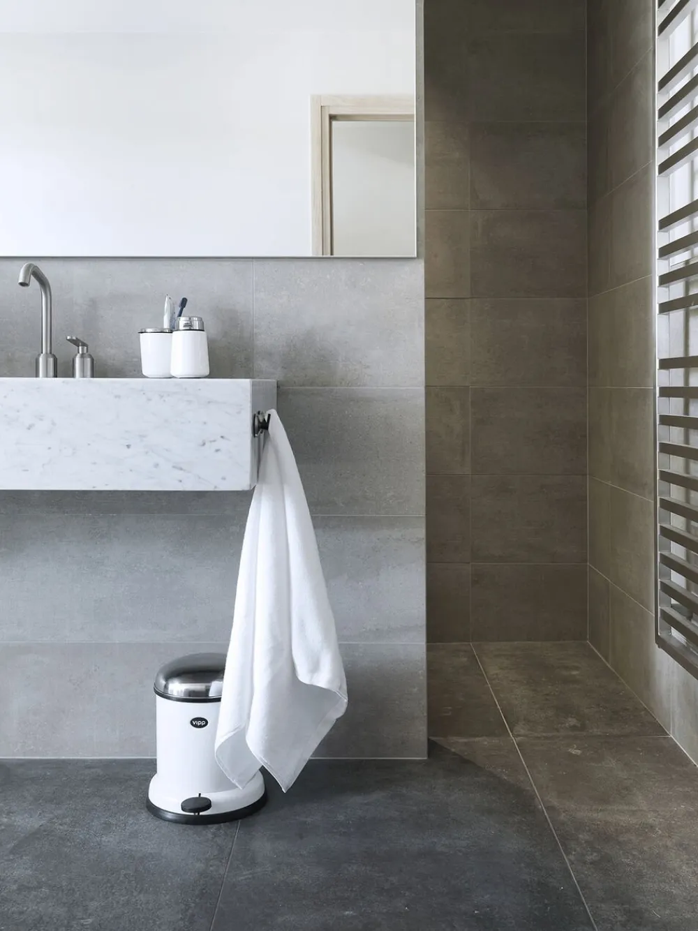 En specialfremstillet pumpe, rustfrit stål og silikonegummi er hovedelementerne i Vipps sæbedispenser. Vipp sæbedispenseren er karakteriseret ved samme karakteristiske formsprog og krav om kvalitet som den mere end 70 år gamle pedalspand. ‘Det relativt store pumpehoved sikrer nem enhånds-betjening ligesom selve pumpekapaciteten er afstemt med en mådeholden mængde sæbe. Samtidig er produktets tyngde holdt mod bunden og gummibunden optimeret i størrelse, så den på een gang står fast og kan placeres på forskelligartede overflader. På den måde er funktionerne afsæt for motiverne til det let genkendelige design’ – Morten Bo Jensen, chefdesigner i Vipp. Må ikke anvendes til opvaskemiddel.