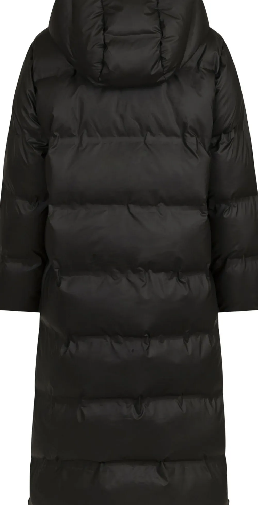 Cool vatteret jakke som er regnafvisende. Kvaliteten er blød og mat oggiver et fedt look. Jakken er lang og har aftagelig hætte og lånlås i siderne. Modellen er 176cm og bærer en størrelse 36.