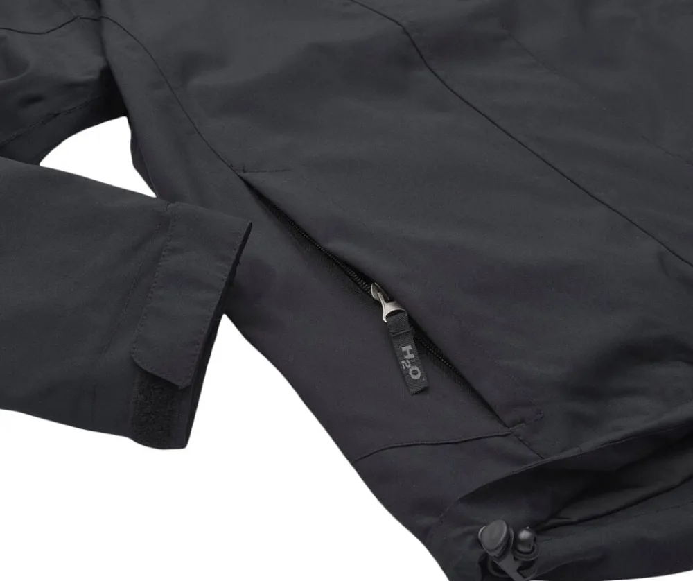 H2O Voss III Jacket er en regnjakke til dame, i et åndbart og funktionelt design, som tillader dig at være aktiv, samt komfortabel og tør. Jakken har en vind- og vandtæt membran kaldet Aquamax. Aquamax membranen har et vandsøjletryk på 10. 000mm. H2O Voss Jacket Women er med justerbar hætte og elastik ved livet, samt velcro ved håndledende, så du får en optimal pasform der holder vind og vejr ude.