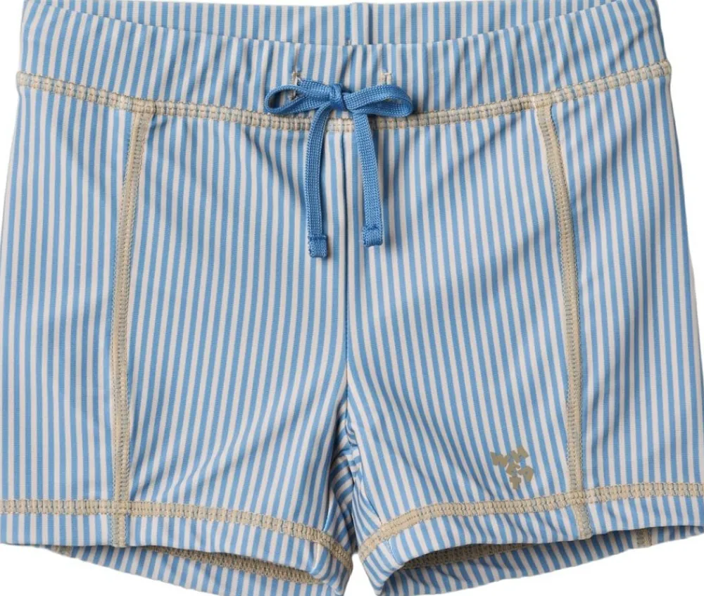 Cool badeshorts med striber og bindebånd til børn. – Klassisk/tæt fit – Foer – Elastik i taljen med bindebånd – Stribet Wheats badetøj er perfekt til en dag på stranden, ved poolen eller blot til vandleg i haven. Alt vores badetøj er overvejende produceret i genanvendt polyester, og er yderst behageligt for dit barn at have tæt på kroppen. Badeshortsene har et cool fit med elastik i taljen og bindebånd. Stylen er med UV 40+/UVF 40+ beskyttelse og er Standard 100 fra OEKO-TEX® certificeret. Kombiner badeshortsene med en bade t-shirt i samme print for et cool look. Forlæng dit badetøjs levetid: – Ved altid at skylle dit badetøj efter badning i klor- eller saltvand. – Ved at følge vaskeanvisningerne — – Standard 100 fra OEKO-TEX® – 83% Genanvendt polyester, 17% Elastan – Foer: 100% Polyester – GRS certificeretKule badeshorts med signaturmønster og fôr for barn. – Avslappet passform – Fôret – Strikk i livet – Snøring i livet Wheats badetøy er perfekt for en dag på stranden eller i svømmehallen. Alt vårt badetøy er hovedsakelig laget av resirkulert polyester og er behagelig for barnet å ha på og bevege seg i. Badeshortsene har en avslappet passform med innerbukse, og både strikk og snøring i livet. Modellen har UV-beskyttelse 40+/UPF 40+ og er OEKO-TEX® sertifisert. Shortsene kan enkelt matches med våre badetrøyer for en stilig sommerlook. Slik tar du vare på badetøyet: – Vask alltid badetøyet etter bruk i klor- eller saltvann – Følg vaskeanvisningene på plagget — – Standard 100 by OEKO-TEX® – 83% Resirkulert polyester, 17 % Elastan – Fôr: 100 % polyester – Produktet er GRS-sertifisert