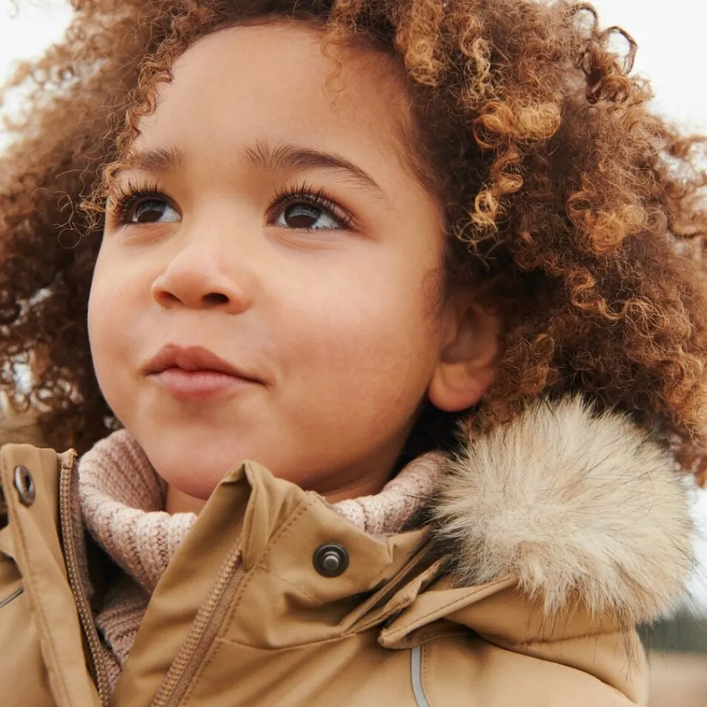 A-formet jakke i vandtæt- og åndbart materiale til børn. Modellen er stor i størrelsen, hvorfor vi anbefaler, at du går en størrelse ned, hvis du er i tvivl. – A-formet med længde bagpå – Foret med blød fleece – Justerbar snøre i taljen – Plissé på ryggen – Aftagelig- og justerbar hætte med aftagelig imiteret pels – Stolpe med trykknapper og skjult YKK-lynlås med hagebeskytter – Sidelommer med lommeklap og velcrolukning – Stormmanchetter med hul til tommelfingeren – Reflekser Wheats jakke er lavet i åndbart, vind- og vandtæt materiale, og er perfekt til de mange kolde efterårs- og vinterdage. Den er designet med høj performance og komfort for øje, da materialet er slidstærkt og smudsafvisende og derfor nemt at rengøre og vedligeholde. Den tekniske jakke er tænkt som en vinterjakke, da den har fleecefoer og er lavet til at holde dit barn varmt hele dagen lang. Jakken har mange praktiske detaljer såsom aftagelig og justerbar hætte og YKK-lynlås med hagebeskytter. — Vandsøjletryk: 10. 000 mm Åndbarhed: 8. 000 g/m2/24 timer Slidstyrke: 50. 000 mm Standard 100 by OEKO-TEX® PFC-fri Flourfri vand- og smudsafvisende finish (BIONIC FINISH ECO) Teknisk letvægts isolationsmateriale Tapede sømme — Yder materiale: 100% Genanvendt nylon Polstring: 100% Genanvendt polyester Fleecefoer: 100% Genanvendt polyester Foer: 100% Genanvendt polyesterA-formet teknisk jakke i vanntett og pustende stoff for barn. – Fôret med myk fleece – Justerbar snor i midjen – Folder på baksiden – Avtagbar hette med avtakbar pelsimitasjon – YKK-glidelås med hakebeskyttelse og klaff med velcro – Lommer med lommeklaffer og trykknapper – Stormmansjetter – Teipede sømmer – Reflektorer Wheat’s tech-jakke er laget i pustende, vind- og vanntett materiale, og er perfekt for mange kalde høst- og vinterdager. Den er designet med ytelse og komfort i tankene, da materialet er holdbart og smussavstøtende og derfor enkelt å rengjøre og vedlikeholde. Den tekniske jakken er ment som en vinterjakke, da den har fleecefôr og er laget for å holde barnet ditt varmt hele dagen. — Vanntett: 10. 000 mm Pusteevne: 8. 000 g/m2/24 t Slitestyrke: 50. 000 mm Standard 100 av OEKO-TEX® PFC-fri Fluor-fri vann- og smussavstøtende finish (BIONIC FINISH ECO) Lettvektig teknisk fôr Teipede sømmer — Ytterskall: 100% Resirkulert nylon Fôr: 100% Resirkulert polyester Fleecefôr: 100% Resirkulert polyester Fôr: 100% Resirkulert polyester