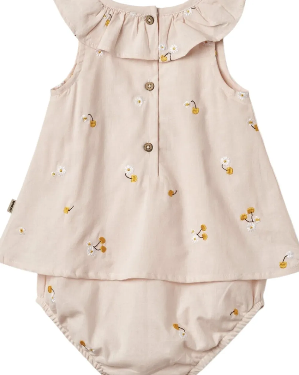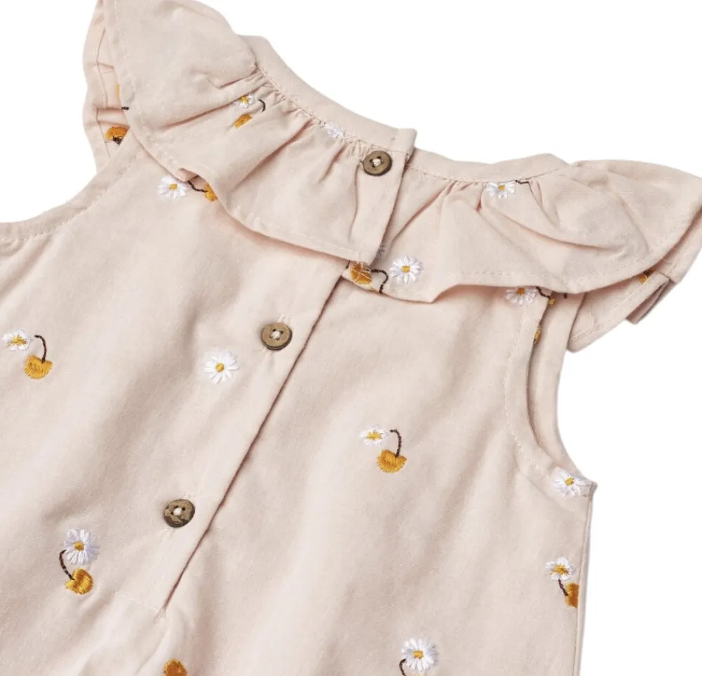Yndig ærmeløs bodykjole i vævet økologisk bomuld til din baby. – Fin krave med læg og rynk – Knaplukning bagpå – Bærestykke udover, som ligner en kjole – Trykknapper i bunden for bedre komfort – Wheat allover broderi Wheats yndige bodykjoler har detaljer, prints- og farver, der emmer af sommer. Den har et flatterende snit, der ligner en kjole udover bodyen. Dragten har knaplukning bagpå og bodyen har trykknapper i bunden, som gør det nemmere for dig at iklæde dit barn. — – Standard 100 ved OEKO-TEX® – 100% økologisk bomuld – Produktet er GOTS-certificeret — – Standard 100 af OEKO-TEX® – 100% Økologisk bomuld – Produktet er GOTS-certificeret