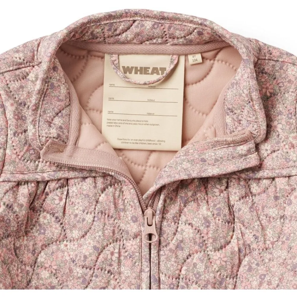 Skøn termojakke med print og flatterende cutline til børn. – A-formet – Bærestykke ved brystet med læg forneden – Høj krave – Ribmanchet med hul til tommelfingeren – Åbne sidelommer – Lynlås med hagebeskytter – Reflekser – Wheat signaturprint Wheats populære termotøj er en sand hverdagsfavorit, da det bløde og lette materiale gør det behageligt at bevæge sig rundt i. Termojakken er produceret i 100% genanvendt materiale og kan bruges både indendørs, såvel som praktisk overgangstøj udendørs. Obs. Jakken er ikke vandtæt, men vandafvisende. Termojakken kan nemt styles med matchende termobukser i samme farve eller styles med en af vores andre termobukser i ensfarvet eller print. Den er fantastisk til overgangen fra sommer til efterår, hvor dit barn har brug for lettere overtøj. På de kølige dage kan termojakken styles under en regnjakke eller teknisk overtøj for bedre isolering. — – 3-lags materiale for ultimativ isolering – Vandafvisende (ikke vandtæt) – PFC-fri – Flourfri vand- og smudsafvisende finish (BIONIC FINISH® ECO) – GRS certificeret — – Standard 100 by OEKO-TEX® – 100% Genanvendt polyester