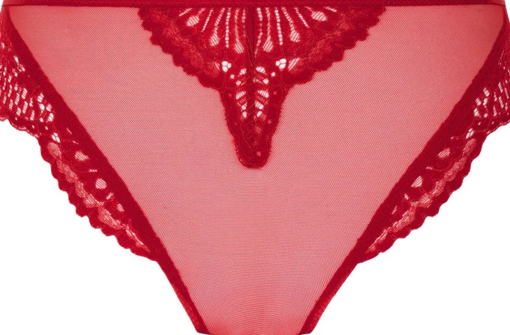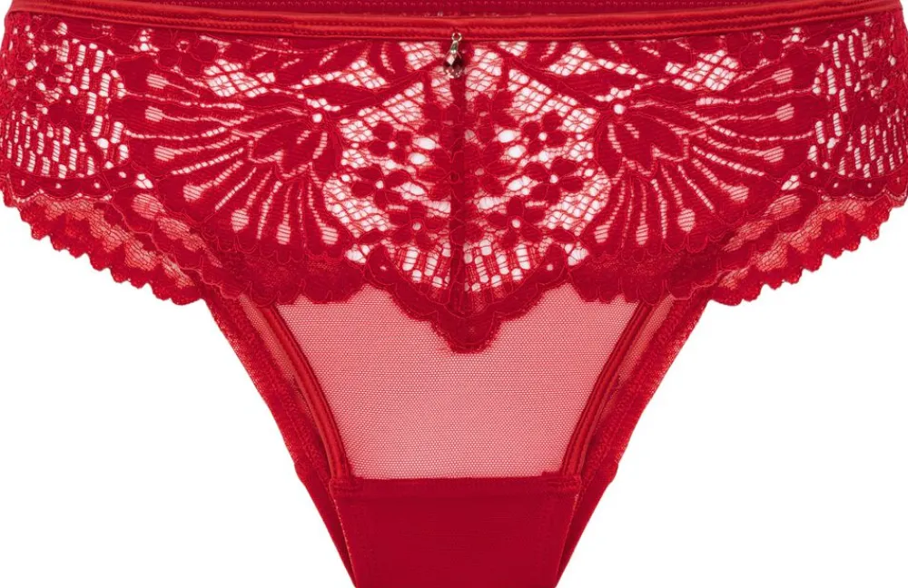 Feminin og raffineret, denne brasilianske trusse er designet til at give dine hverdagsmodeller et strejf af glitter. Den er lavet af blonder og tilbyder en flatterende pasform med moderat dækning og en fræk finish. Detaljen – en glitrende juvel i midten – tilføjer et strejf af elegance og charme, hvilket gør disse trusser perfekte til både hverdagsbrug og særlige lejligheder. Fuldend looket med den matchende bh.