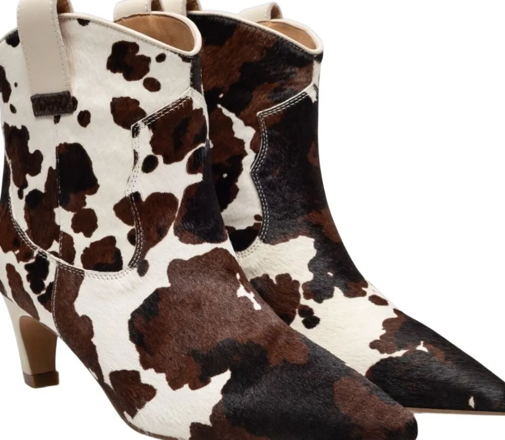 Cowgirl cool, forhøjet. Dicte Animal gentænker westernstøvlen gennem et high-Fashion-glas med dristigt, certificeret kohårslæder i denne sæsons iøjnefaldende print. Med en formet hæl og WODEN Natural Soft Technology® for opgraderet komfort hele dagen. *Da produktet er fremstillet af ægte læder med naturligt Hår, kan nogle hår tabe sig med tiden, uden at det går ud over kvaliteten eller holdbarheden. – Overdel: 100% LWG-certificeret printet oksehårlæder – Ydersål: slidstærk tunit med Recycled genbrugsgummi – For: 100% læder – Hælhøjde: 5,5 cm – Skafthøjde: 10,5 cm – Skaftbredde: 14,5 cm – Detaljer i genanvendt fiskelæder med ASC-certificering – WODEN Natural Soft Technology ®