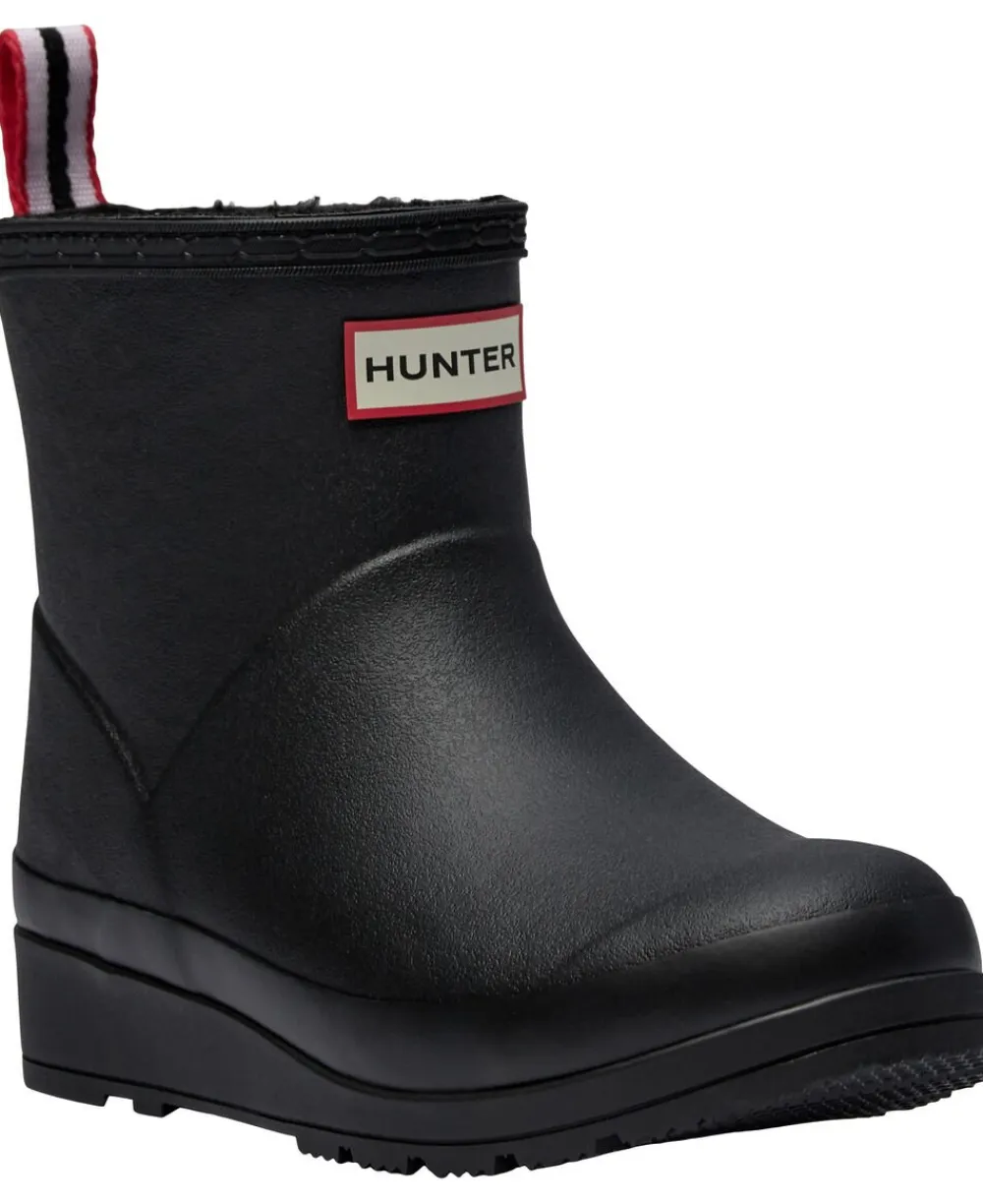 Spil kort isoleret støvle. Håndlavet polyesterfor imiteret pels og tilføjet termisk isoleringsindersål. Træk i tappen for nem fodadgang og fladere sål med vinklet blokhæl for ekstra komfort. Vandtæt.