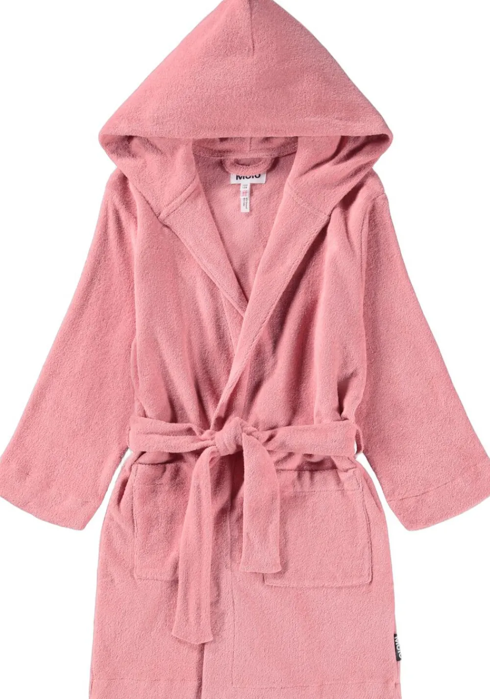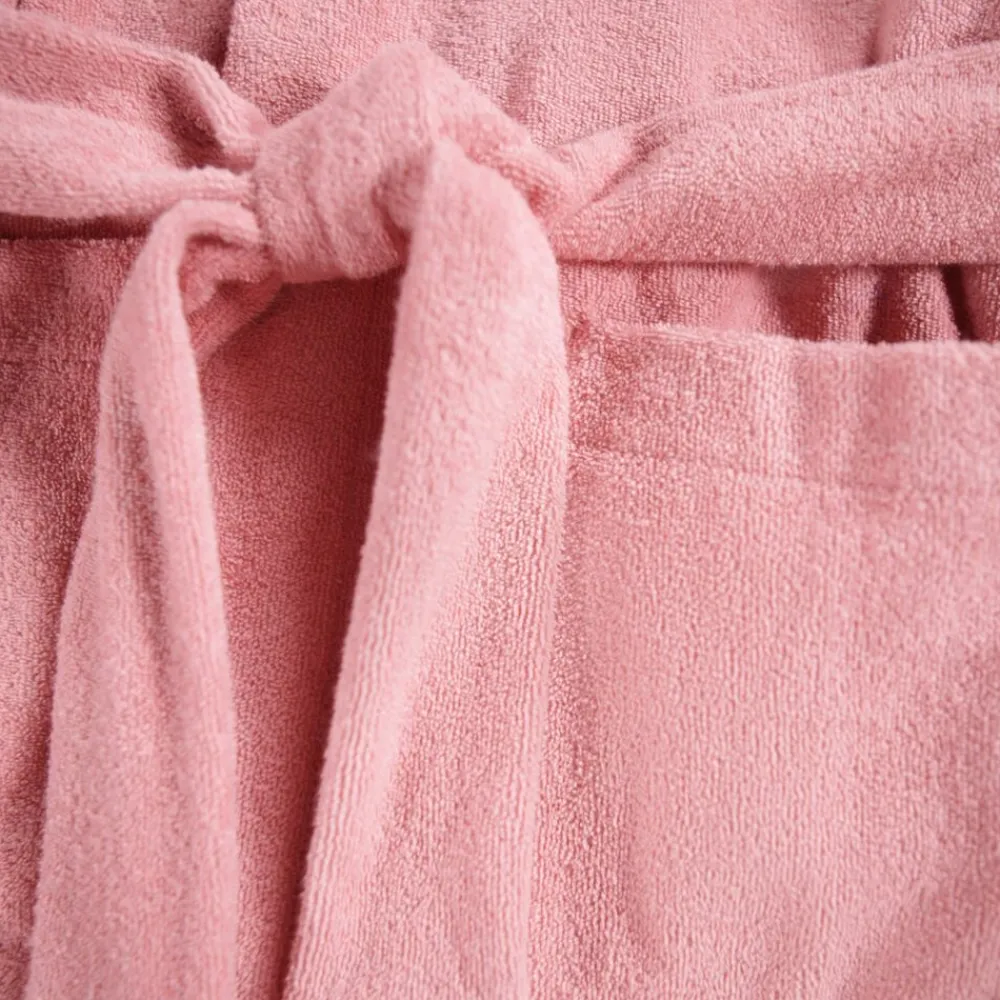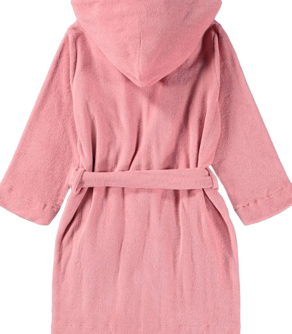 Rosa badekåbe fra Molo i superblød økologisk bomuldsfrotté med to lommer, bindebånd i taljen og en hætte.
