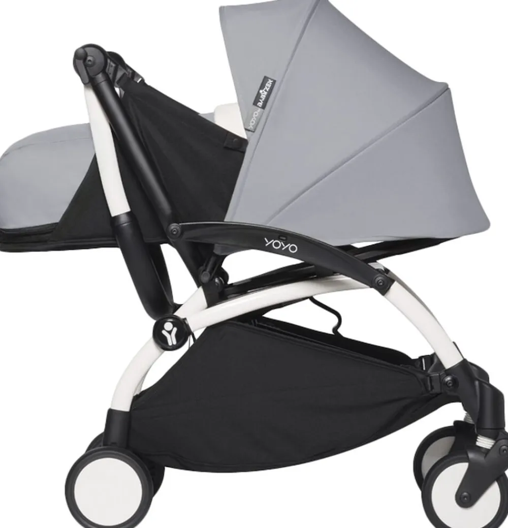 YOYO³ klapvognen med nyfødt pakken giver dig mulighed for at lægge din baby helt fladt med ansigtet vendt mod dig og sikret med en 5-punktssele.