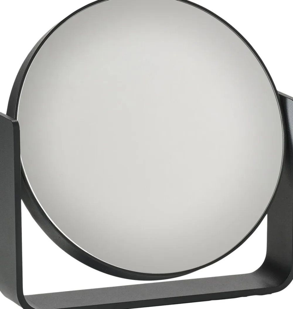 Uundværligt bordspejl, der pynter, hvor end du placerer det. Den ene side er almindeligt spejl, mens den anden forstørrer hele fem gange. Spejlet roterer sikkert om egen akse, da det bæres af en bred aluminiumsramme, som samtidig udgør spejlets stabile base. Det er pulverlakeret og har et fint mat look. Spejlet glider smukt ind i den populære UME-serie og fås i alle 7 farver: Black, White, Soft Grey, Grey, Eucalyptus, Taupe, Olive Green.