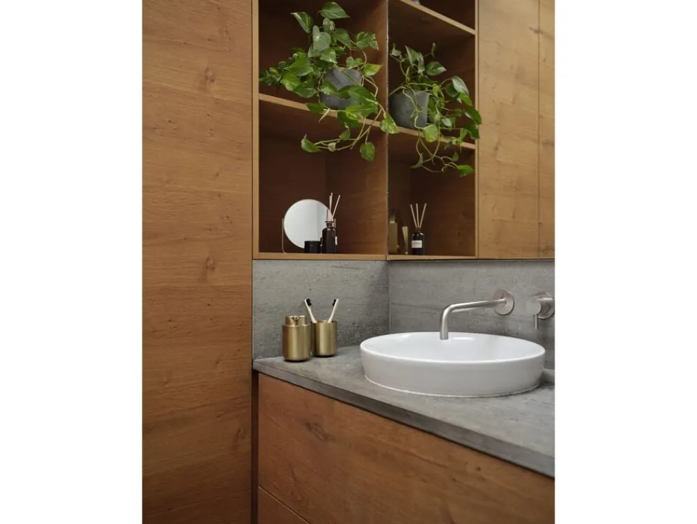 Den populære Ume-badserie har fået et nyt, sofistikeret udtryk med en varm, mat messingfinish et eksklusivt valg til at skabe et indbydende og harmonisk badeværelsesmiljø. De bløde, organiske former spiller smukt sammen med den afdæmpede varme fra den matte messingfinish, der tilfører serien en forfinet luksus og tidløs charme. En perfekt balance mellem funktion og æstetik skabt i samarbejde med designteamet VE2. I gulvhøjde byder serien på en mindre pedelspand samt toiletbørste i cylinderformet holder. Til væggen er der matchende toiletrulleholder samt kroge i elegant u-form med skjulte beslag. Til bordet findes både sæbedispenser, sæbeskål samt tandbørstekrus samt rundt bordspejl med vippefunktion.