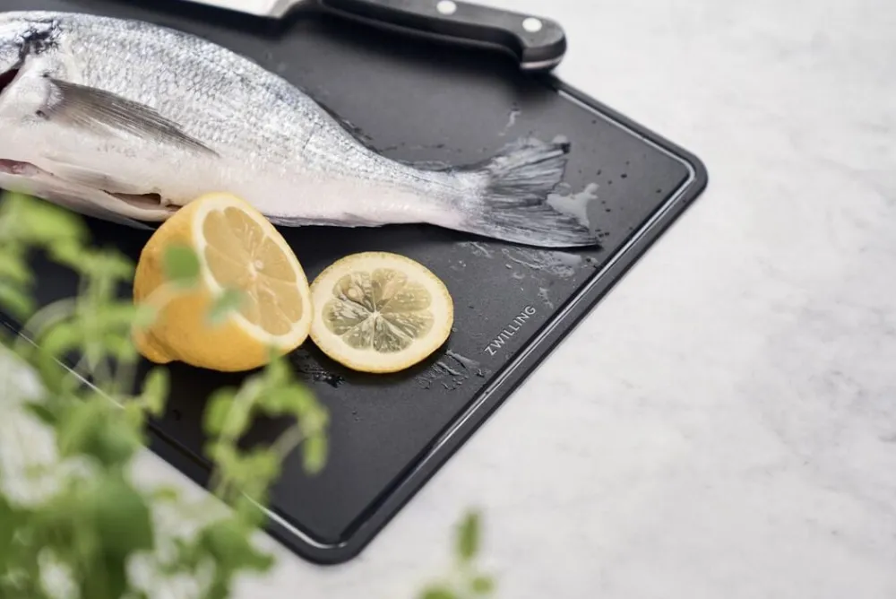 Forenkler dit køkkenarbejde: Med ZWILLING TPU-skærebrættet bliver det legende let at tilberede grøntsager, kød og meget mere. Takket være det antibakterielle materiale af høj kvalitet er brætterne perfekte til hverdagsbrug. Den bladskånende overflade beskytter dine knive, mens den indbyggede opsamlingsrille holder arbejdsfladen ren. Det fleksible design gør det nemt at opsamle og transportere hakkede ingredienser. Og efter brug kan brættet nemt rengøres i opvaskemaskinen sådan bliver madlavning en ren fornøjelse.