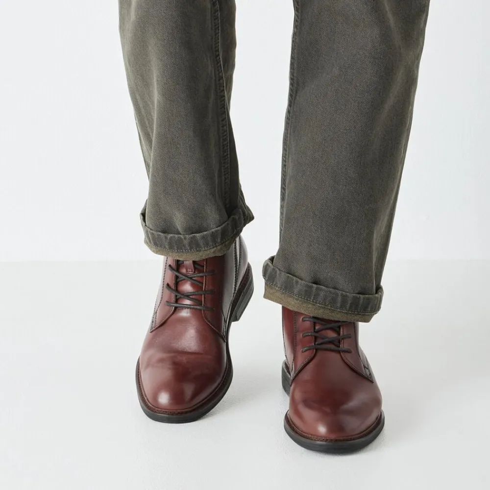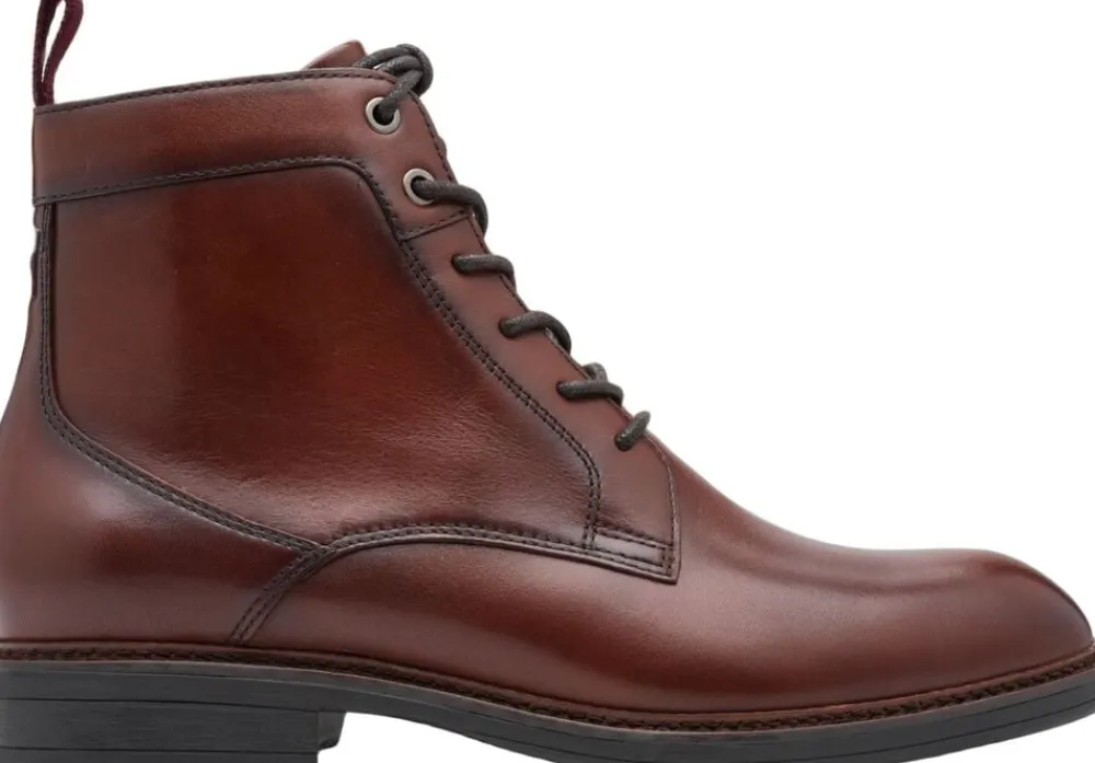 Ankel støvle i flot cognac farvet skind og med et 10 cm skaft højde. Der er indvendig lynlås og støvlen er skindfoeret. Ydersålen er i blød gummi.