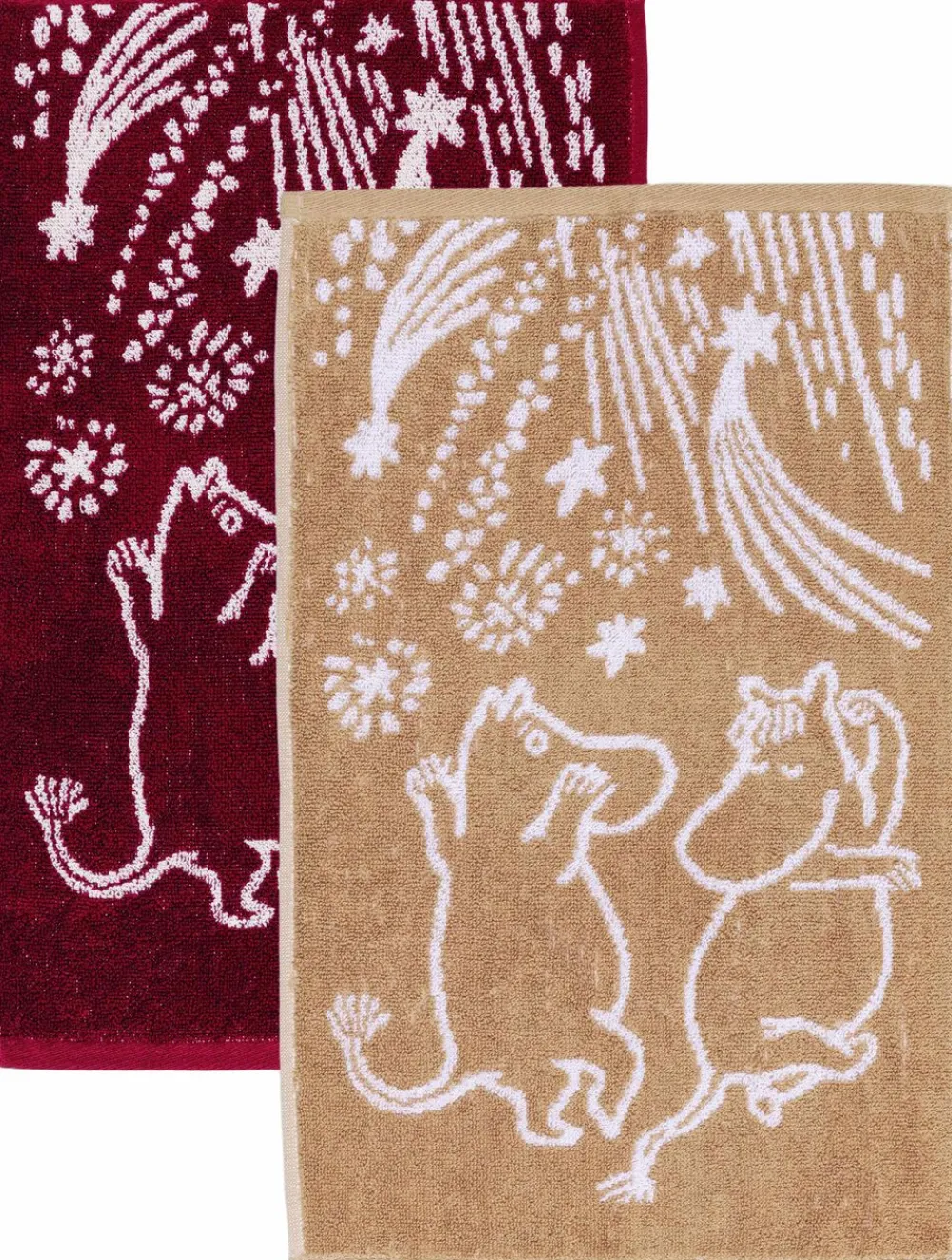 Nyd de behagelige og bløde Mumi-håndklæder! Mumitroldenes 80 års jubilæeumskollektion Festlige Øjeblikke hylder sammenhold og venskab. Lad os fejre glæden ved at være sammen og vise taknemmelighed over for venner, uanset hvor de er! Moomin Arabia-håndklædesæt 30×50, Festlige Øjeblikke, GOTS
