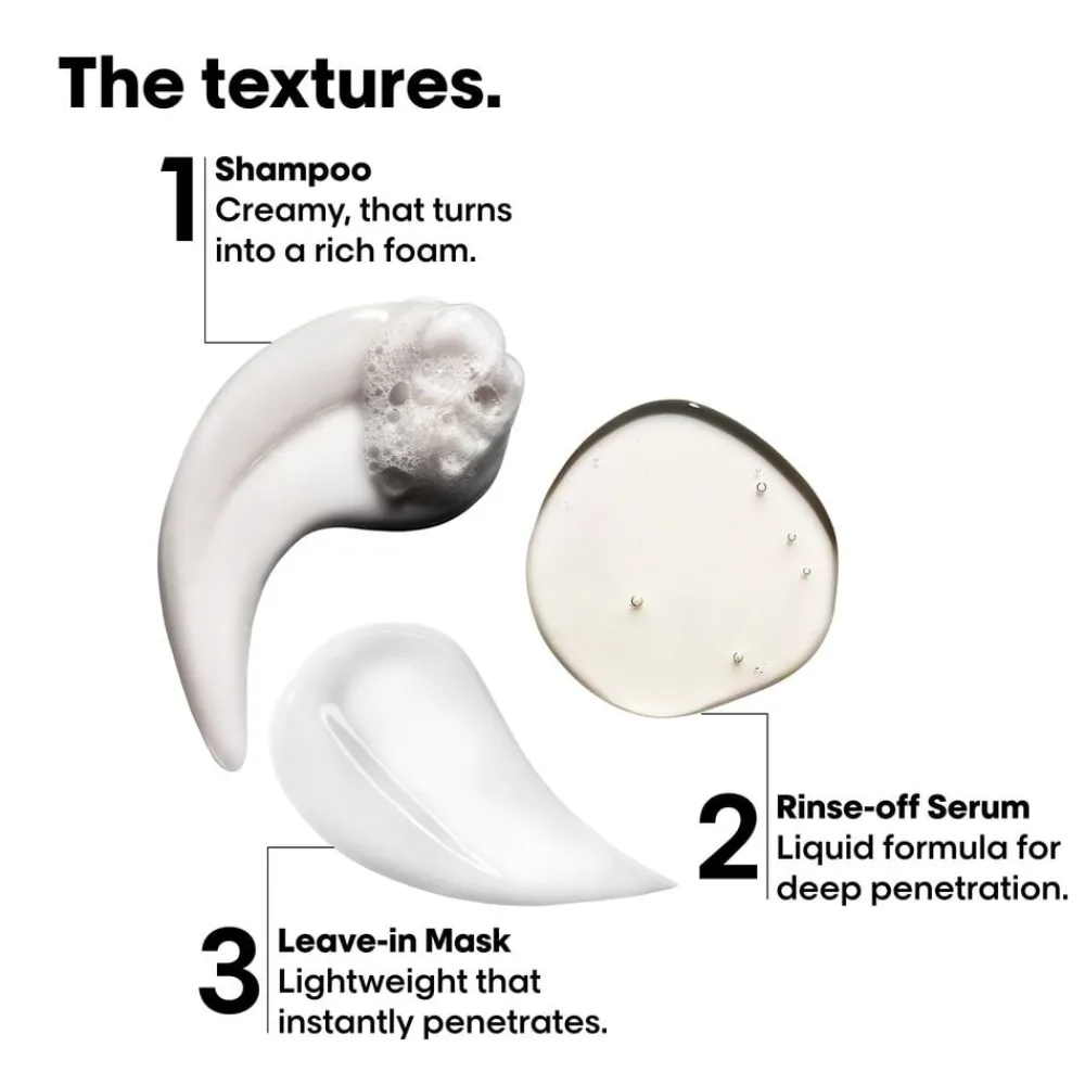 *Instrumental test på fiberens makromolekylære struktur efter påføring af shampoo + rinse-off serum + leave-in mask.