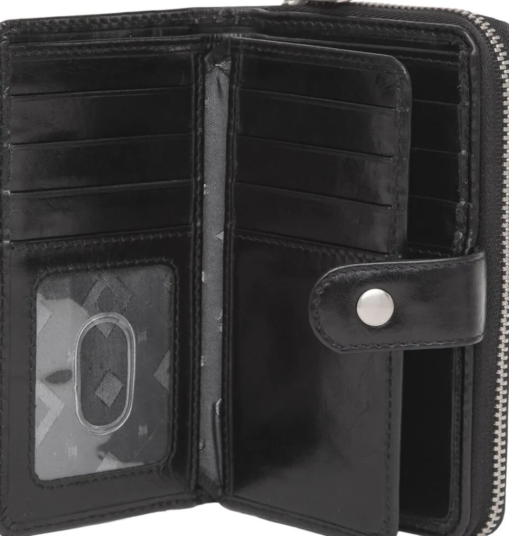 Karina pung i Salerno kalveskind har to dele. Pungens ene del består af et rum med lynlås, hvoraf denne opdeles i fire mindre rum. Den anden del lukkes med trykknap, og har lommer til syv kreditkort samt en lomme til foto. Pungen har derudover plads til kontanter. Vi anbefaler Adax læderbalsam samt Adax Protection spray til denne model.