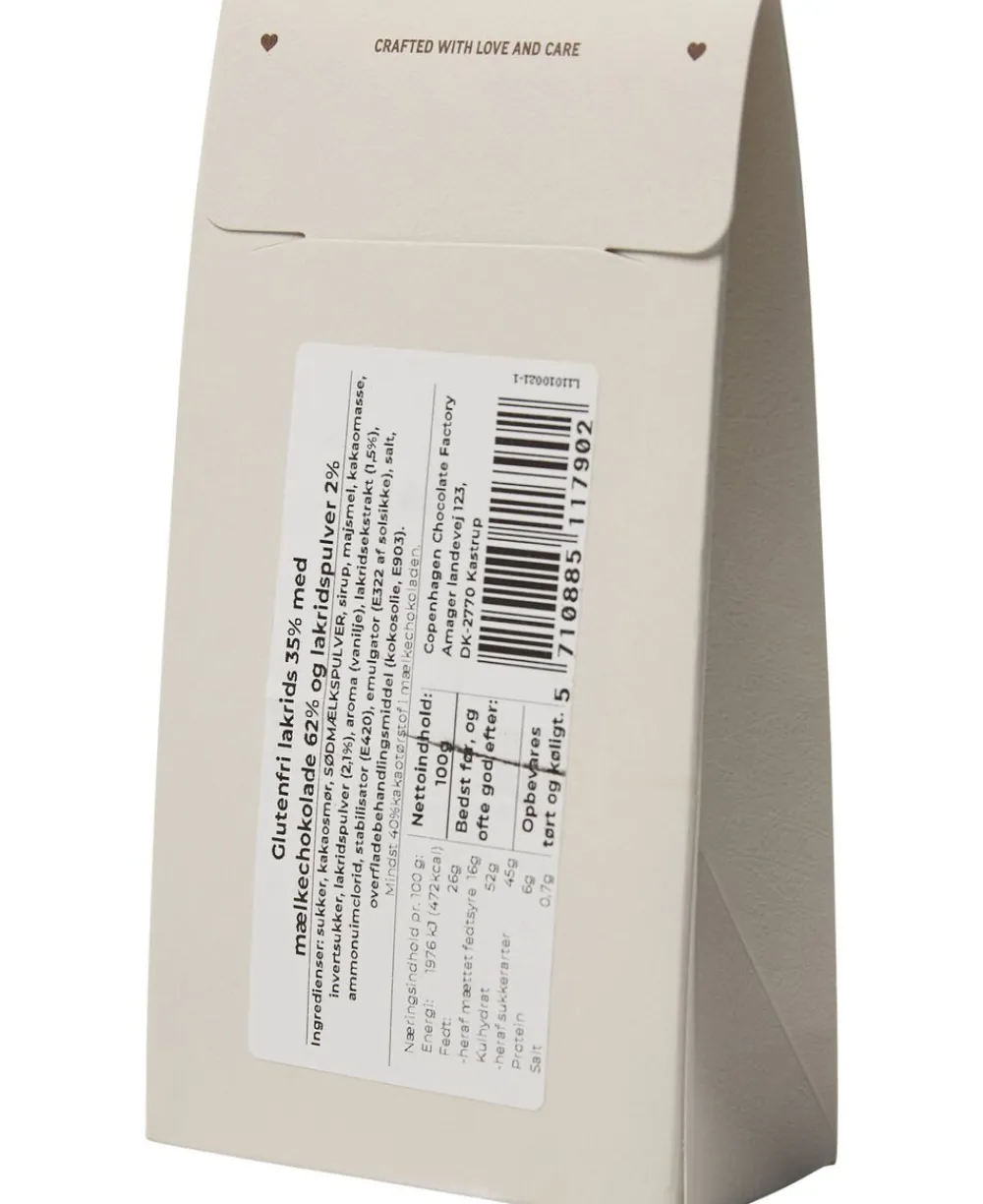 Lakridsdragé fra Magasin du Nord Chocolate med mælkechokolade og lakridspulver i en dekorativ æske. Lakridsen er glutenfri, produceret i Danmark og er lavet af udsøgte råvarer. Forkæl dig selv eller en du har kær med denne fine gaveæske.